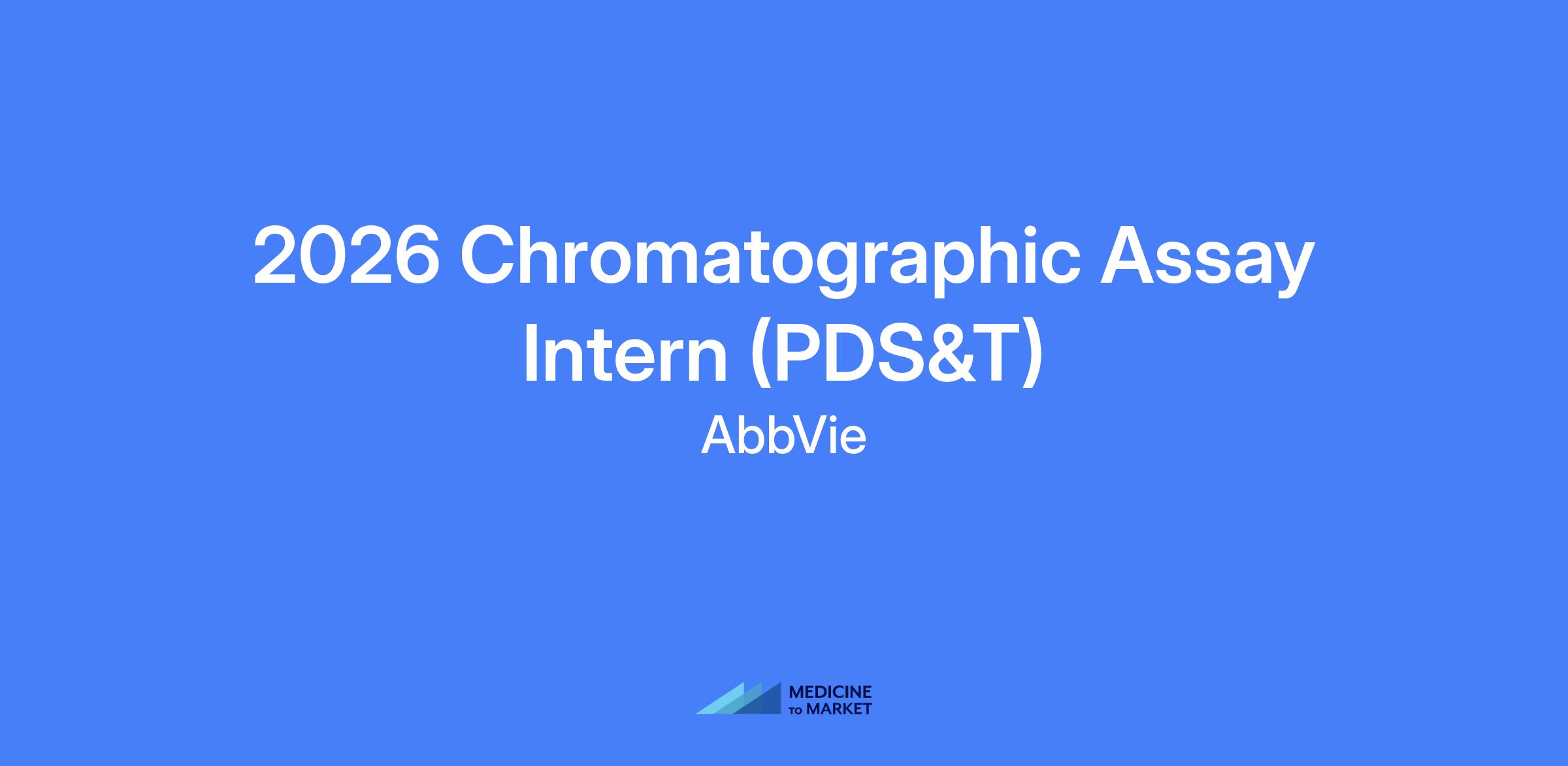 2026 Chromatographic Assay Intern (PDS&T) of AbbVie. Summer internship within Product Development Science and Technology (PDS&T) Analytical Sciences, focusing on improving chromatographic assay precision and independently designing and executing analytical methods to support manufacturing processes for clinical phase and commercial products. Collaborative environment with cross-functional teams to support quality and efficacy of products and patient health.
