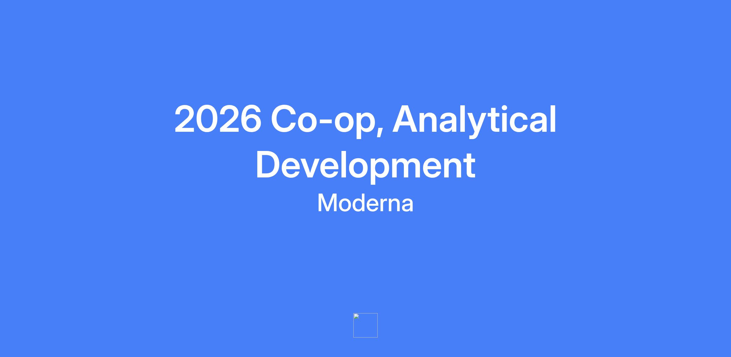 Winter/spring co-op opportunity in Norwood, MA (January 20, 2026 – June 26, 2026). Participate in Analytical Development within Moderna’s Technical Development organization, contributing to the development and validation of analytical methods for mRNA/LNP programs, and supporting tech transfer, scale-up, and regulatory activities.