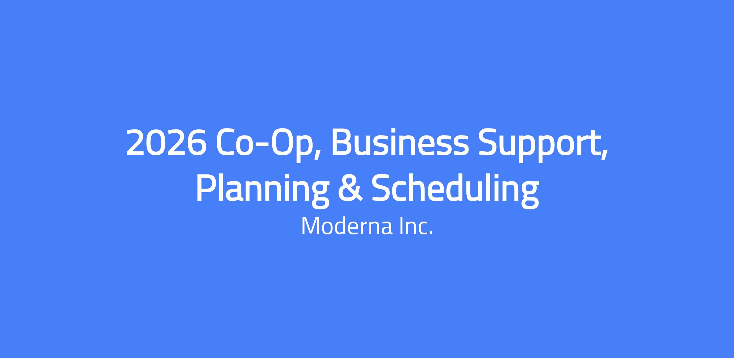 The Role: In this role, you will support the planning and scheduling activities that enable safe, compliant, and reliable operations across Modernaâs facilities and engineering systems. As a 6-month Co-op on the Business Support team, you will gain hands-on exposure to GMP operations, maintenance planning, and cross-functional collaboration while supporting business-critical processes that drive facility performance and operational excellence. This position will run from July 13th-December 11th. Here's What Youâll Do · Maintenance Planning & Scheduling Support: Assist with planning and scheduling activities for GMP process equipment, calibration, and utilities, including work order review, preventive maintenance (PM) compliance tracking, and backlog management. · Data Analysis & Reporting: Analyze maintenance and asset data from CMMS systems (e.g., Maximo) and reporting tools to identify trends, bottlenecks, and opportunities for operational improvement. · Asset & Inventory Management: Support asset onboarding activities, spare parts data review, inventory tracking, and maintenance data accuracy within enterprise systems. · Performance Metrics & Dashboards: Develop and maintain KPIs, dashboards, and reports across multiple platforms (e.g., Smartsheet, Tableau) to support adherence reviews, capacity forecasting, and data-driven operational decision-making. · Cross-Functional Collaboration: Partner with Operations, Quality, Validation, Engineering, and Facilities teams to support maintenance, reliability, and continuous improvement initiatives. · Documentation & Compliance Support: Assist with documentation updates and data reviews to ensure alignment with GMP, safety, and internal compliance standards. · Learning & Development: Apply Modernaâs safety, quality, and operational standards while building technical, analytical, and professional skills through hands-on experience and mentorship. · Additional duties as may be assigned from time to time. Hereâs What Youâll Need (Basic Qualifications) · Education - Currently pursuing a Bachelorâs degree in engineering or a related field. · Experience - No prior industry experience required; relevant coursework, academic projects, or prior co-op or internship experience is a plus. · Required Licenses, Certifications, Courses - None required. · This position is site-based, requiring you to be at Modernaâs site full-time. This position is not eligible for remote work. · At Moderna, we are focused on delivering on our mission by enabling talent to thrive. For this role, we are currently unable to offer immigration sponsorship. Candidates must already hold work authorization in US and be able to maintain that status without the need for future sponsorship. Pay & Benefits At Moderna, we believe that when you feel your best, you can do your best work. Thatâs why our co-op benefits are designed to support you during your time with us âat work, at home, and everywhere in between. Free premium access to meditation and mindfulness classes Subsidized commuter benefits Generous paid time off, including vacation, sick time, holidays, volunteer days, and a discretionary year-end shutdown Location-specific perks and extras The salary range for this role is $20.00 - $60.00. This is the lowest to highest salary we in good faith believe we would pay for this role at the time of this posting. An individualâs position within the salary range will be based on several factors including, but not limited to, specific competencies, relevant education, qualifications, certifications, experience, skills, performance, and business or organizational needs. The successful candidate may be eligible for an annual discretionary bonus, other incentive compensation, or equity award, subject to company plan eligibility criteria and individual performance. The successful candidate may be eligible for an annual discretionary bonus, other incentive compensation, or equity award, subject to company plan eligibility criteria and individual performance. About Moderna Since our founding in 2010, we have aspired to build the leading mRNA technology platform, the infrastructure to reimagine how medicines are created and delivered, and a world-class team. We believe in giving our people a platform to change medicine and an opportunity to change the world. By living our mission, values, and mindsets every day, our people are the driving force behind our scientific progress and our culture. Together, we are creating a culture of belonging and building an organization that cares deeply for our patients, our employees, the environment, and our communities. We are proud to have been recognized as a Science Magazine Top Biopharma Employer, a Fast Company Best Workplace for Innovators, and a Great Place to Work in the U.S. If you want to make a difference and join a team that is changing the future of medicine, we invite you to visit modernatx.com/careers to learn more about our current opportunities. Our Working Model⯠As we build our company, we have always believed an in-person culture is critical to our success. Moderna champions the significant benefits of in-office collaboration by embracing a 70/30 work model. This 70% in-office structure helps to foster a culture rich in innovation, teamwork, and direct mentorship. Join us in shaping a world where every interaction is an opportunity to learn, contribute, and make a meaningful impact. Moderna is a smoke-free, alcohol-free, and drug-free work environment. Equal Opportunities Moderna is committed to equal employment opportunity and non-discrimination for all employees and qualified applicants without regard to a person's race, color, sex, gender identity or expression, age, religion, national origin, ancestry or citizenship, ethnicity, disability, military or protected veteran status, genetic information, sexual orientation, marital or familial status, or any other personal characteristic protected under applicable law. M