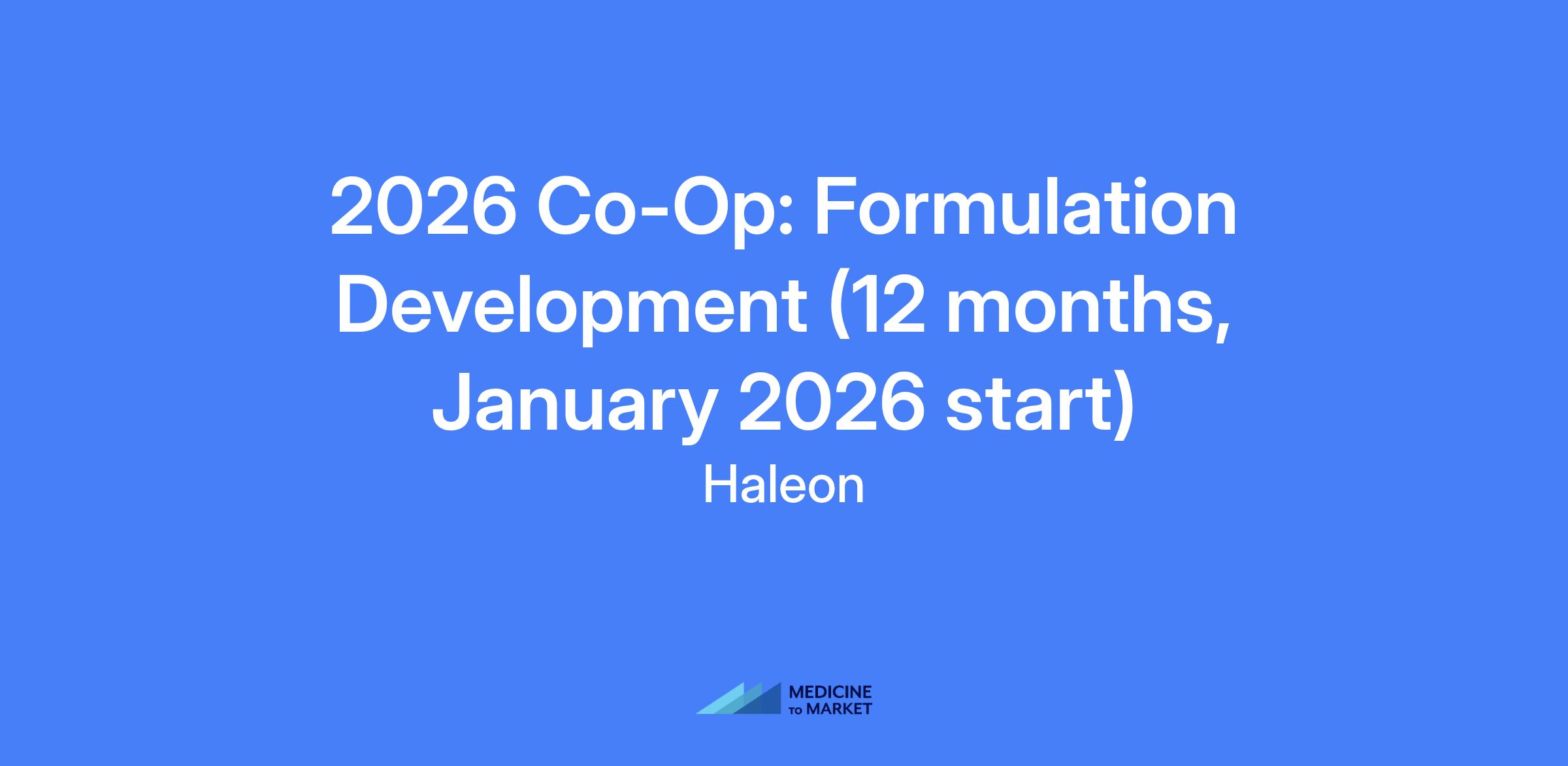 2026 Co-Op: Formulation Development (12 months, January 2026 start) at Haleon. Co-ops in New Product Formulation Development to join a global OTC R&D team delivering innovation to consumers worldwide. Work with experts across the organization on formulation development for over-the-counter medicinal products.