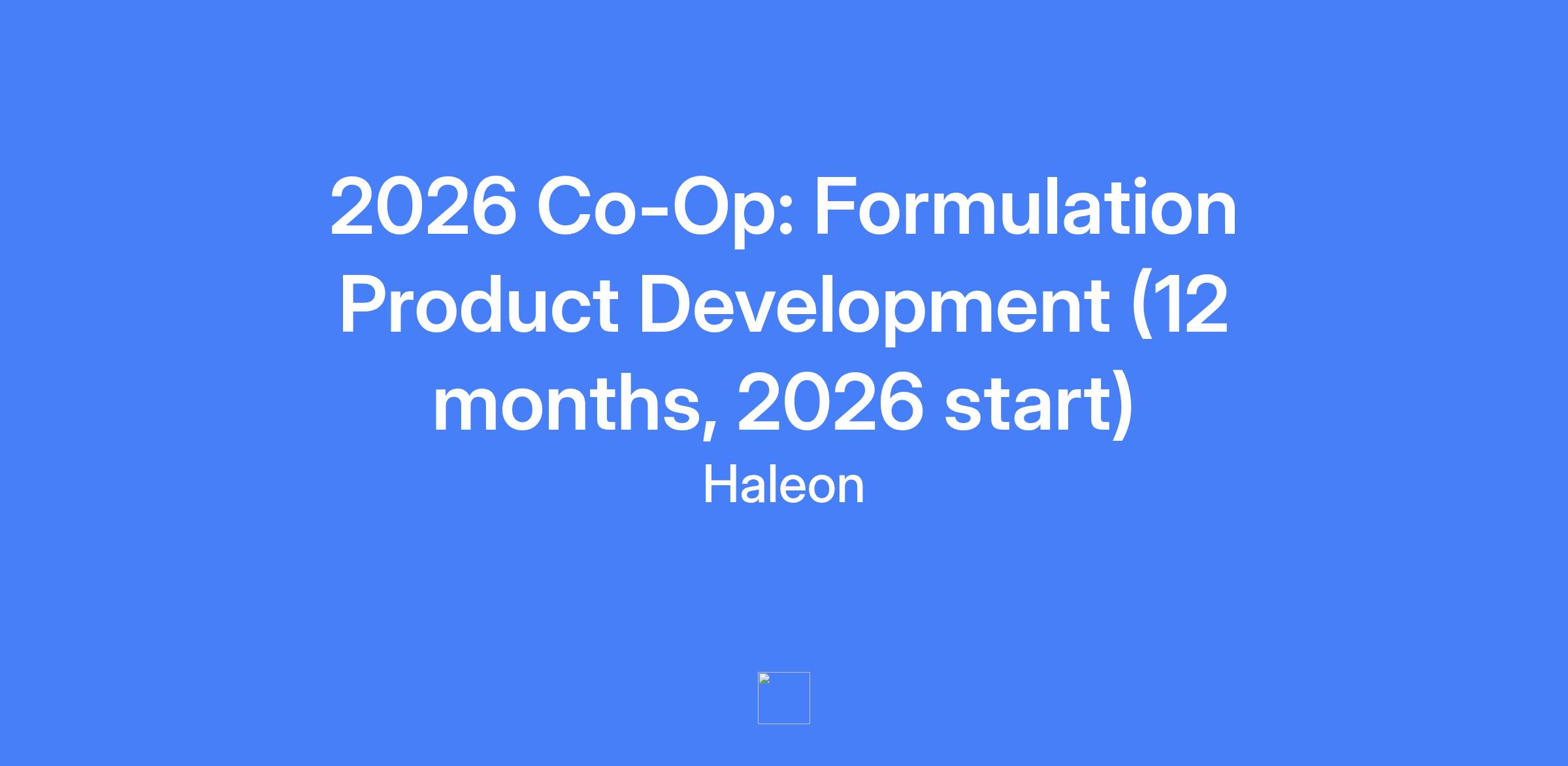 The 2026 Co-Op: Formulation Product Development is a 12-month program starting in 2026, based in the Richmond, VA area. You will join Haleon’s EMEA-LATAM Innovation & Development team to help develop new consumer healthcare products, with a focus on multivitamin formulations. The role involves hands-on experience in formulation development, physical and chemical testing, and scale-up processes for solid dosage forms, including tablets, within a collaborative product development setting.