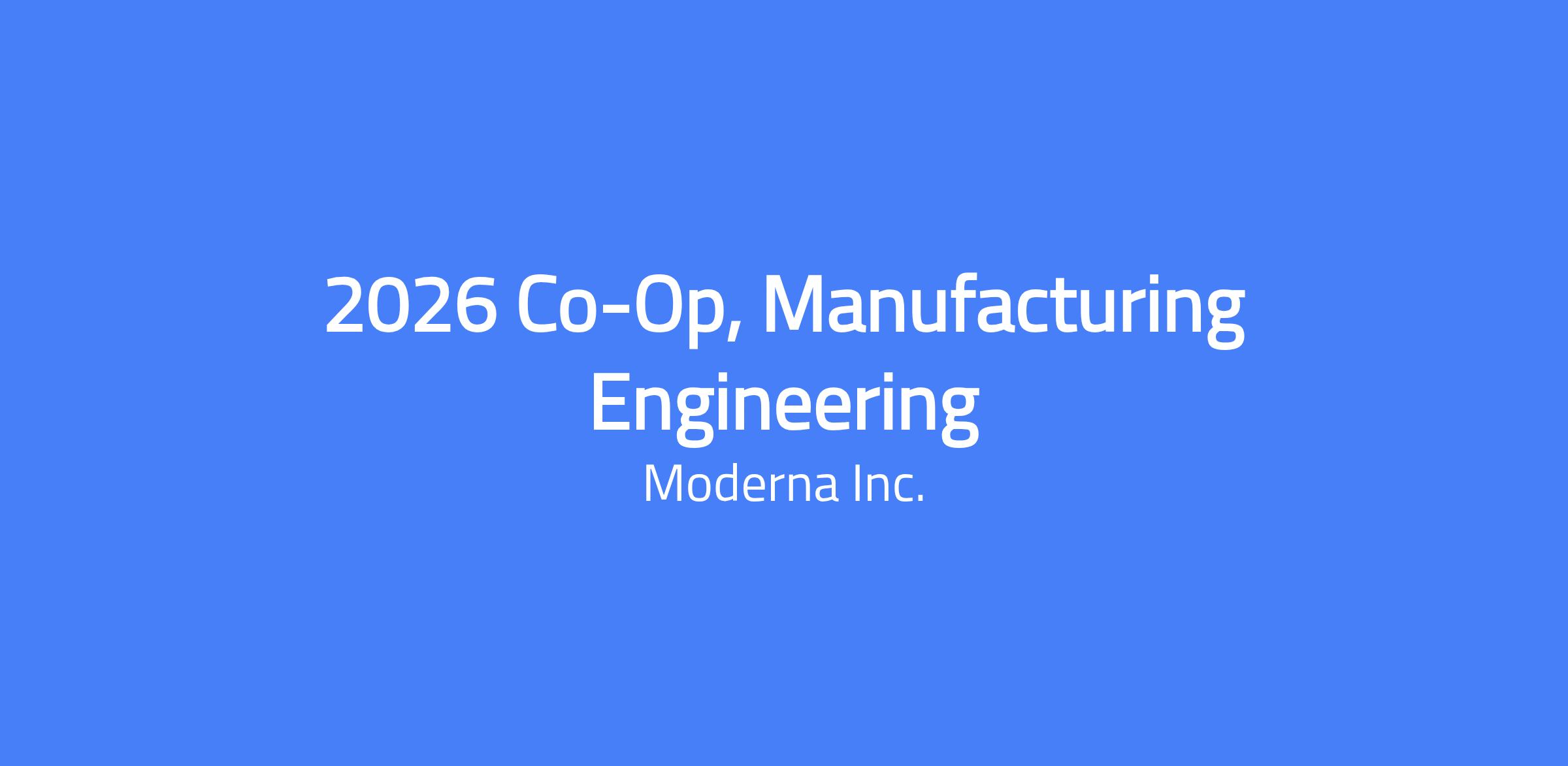 The Role This is a 5 month Spring Co-Op opportunity in Norwood, MA from July 13th-December 11th. Applicants must be available for the entire duration of the internship. Start date will be July 13th, 2026. The Drug Substance Organization at Moderna is seeking a Manufacturing Process Engineering Co‑op to support the reliable, safe, and compliant operation of our mRNA manufacturing processes. You will develop hands‑on expertise with critical process equipment and help drive continuous improvement of throughput, quality, and equipment reliability. You’ll own scoped projects end‑to‑end with supervision and support, partner with cross‑functional teams and equipment vendors, and learn how cGMP manufacturing comes together at scale, while interfacing directly with operations that produce life-changing therapeutics. Here’s What You’ll Do Develop equipment & process expertise on critical unit operations (e.g., mixing skids, pumps, filtration modules, sensors/instrumentation). Support proactive risk management for equipment and process systems using HACCP/FMEA (maintain risk registers, identify failure modes, propose/track mitigations). Identify and deliver process improvements: analyze performance data (yield, cycle time, alarms, OEE/SPC), build problem statements and business cases, and execute improvement projects through change control with defined success metrics. Own end‑to‑end delivery (with supervision): scope, plan, coordinate vendors/SMEs, draft and execute test plans (Recipe verification, IOQ as applicable), implement solutions, verify benefits with before/after data, and close out with a concise report‑out. Assist with troubleshooting: participate in root cause investigations and CAPA actions; support on‑the‑floor triage during campaigns and engineering runs as needed. Collaborate cross‑functionally with Manufacturing Operations, Maintenance/Facilities, Automation/IT, MSAT/Tech Ops, Quality (QA/QC), EHS, Supply Chain, and external manufacturing equipment vendors. Support tech transfer/commissioning activities (data collection, protocol execution, training materials) to bring improvements into routine use. Practice strong cGMP/EHS behaviors: Good Documentation Practices (GDP), safe work permits/LOTO awareness, and adherence to plant procedures and standards. Communicate clearly: prepare crisp updates, visuals/dashboards, and formal reports with conclusions and recommended next steps; present progress in cross‑functional forums. Here’s What You’ll Need (Basic Qualifications) Current student pursuing a BS or MS in Mechanical, Chemical, Bio/Biomedical, Industrial/Manufacturing, Electrical/Mechatronics Engineering, or a related field. Fundamental engineering skills for evaluating data and systems; comfort reading P&IDs and equipment manuals. Hands‑on aptitude with lab or production equipment; willingness to be present on the manufacturing floor. Familiarity with quality/reliability tools such as FMEA/FMECA, 5 Whys, fishbone, and basic SPC/control charts. Ability to analyze data and visualize trends using Excel/Google Sheets; exposure to JMP/Minitab or Python a plus. Clear written and verbal communication; organized documentation and follow‑through. Strong fundamental scientific and engineering skills for the evaluation of experimental data At Moderna, we are focused on delivering on our mission by enabling talent to thrive. For this role, we are currently unable to offer immigration sponsorship. Candidates must already hold work authorization in US and be able to maintain that status without the need for future sponsorship. This position is site-based, requiring you to be at Moderna’s site full-time. This position is not eligible for remote work. Here’s What You’ll Bring to the Table (Preferred Qualifications) GPA of 3.5 on a 4 scale or equivalent Knowledge of basic instrumentation (flow, pressure, temperature) and controls/automation concepts (PLC/SCADA/DCS fundamentals). Experience with Lean/Six Sigma (5S, standard work, kaizen), basic CAD, or simple scripting for data wrangling. Demonstrated ability to work both independently as well as the ability to contribute to high performing teams. Excellent written and verbal communication skills. A desire to make an impact as part of a high-growth, transformational company that is Bold, Relentless, Curious, and Collaborative. Pay & Benefits At Moderna, we believe that when you feel your best, you can do your best work. That’s why our co-op benefits are designed to support you during your time with us —at work, at home, and everywhere in between. Free premium access to meditation and mindfulness classes Subsidized commuter benefits Generous paid time off, including vacation, sick time, holidays, volunteer days, and a discretionary year-end shutdown Location-specific perks and extras The salary range for this role is $20.00 - $60.00. This is the lowest to highest salary we in good faith believe we would pay for this role at the time of this posting. An individual’s position within the salary range will be based on several factors including, but not limited to, specific competencies, relevant education, qualifications, certifications, experience, skills, performance, and business or organizational needs. The successful candidate may be eligible for an annual discretionary bonus, other incentive compensation, or equity award, subject to company plan eligibility criteria and individual performance. The successful candidate may be eligible for an annual discretionary bonus, other incentive compensation, or equity award, subject to company plan eligibility criteria and individual performance. About Moderna Since our founding in 2010, we have aspired to build the leading mRNA technology platform, the infrastructure to reimagine how medicines are created and delivered, and a world-class team. We believe in giving our people a platform to change medicine and an opportunity to change the world. By living our 