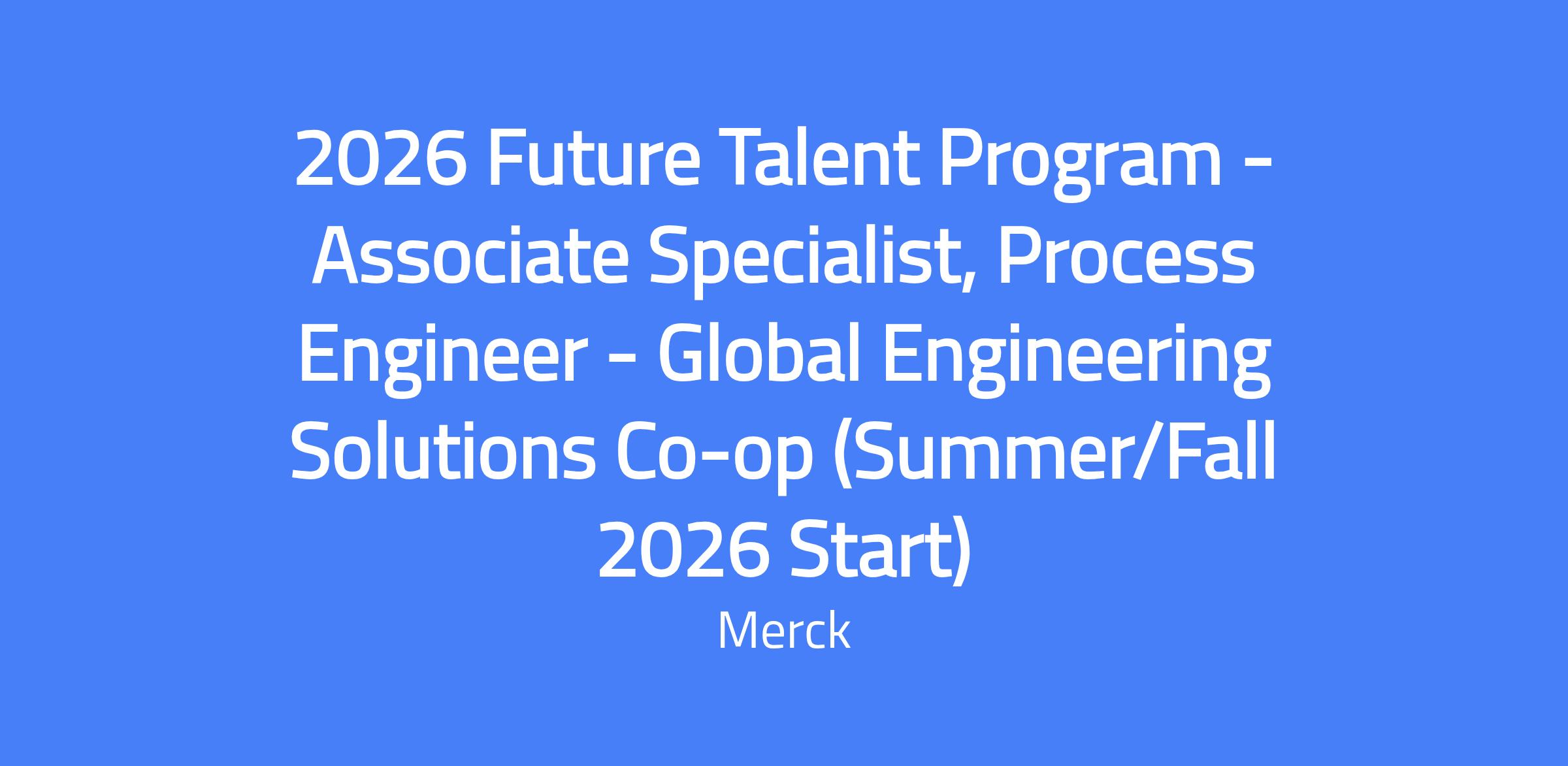 - Prior intern/co-op experience in manufacturing or engineering (preferably Pharmaceutical).