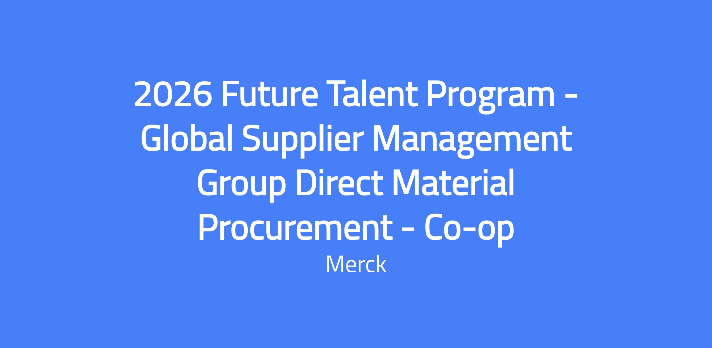 The 2026 Future Talent Program Co-op in Global Supplier Management Group Direct Material Procurement provides hands-on experience in strategic supplier management, market intelligence, and data-driven procurement. You will support sourcing strategies, supplier performance, and cost-saving initiatives while collaborating with cross-functional teams. The role may emphasize digitization and data analytics within procurement.