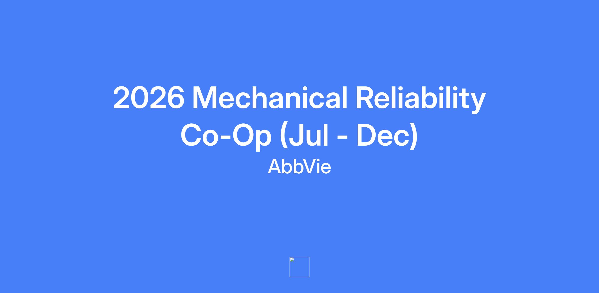 2026 Mechanical Reliability Co-Op (Jul - Dec) at AbbVie Bioresearch Center, Worcester, MA. Gain hands-on experience in reliability engineering within a pharmaceutical manufacturing environment, supporting maintenance strategy, asset reliability programs, and process improvement initiatives.
