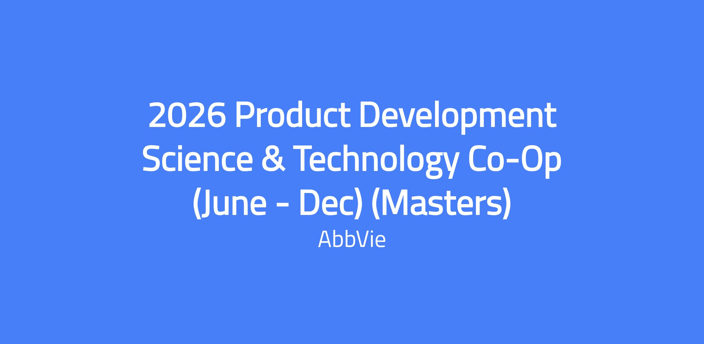 2026 Product Development Science & Technology Co-Op (June - Dec) (Masters)
