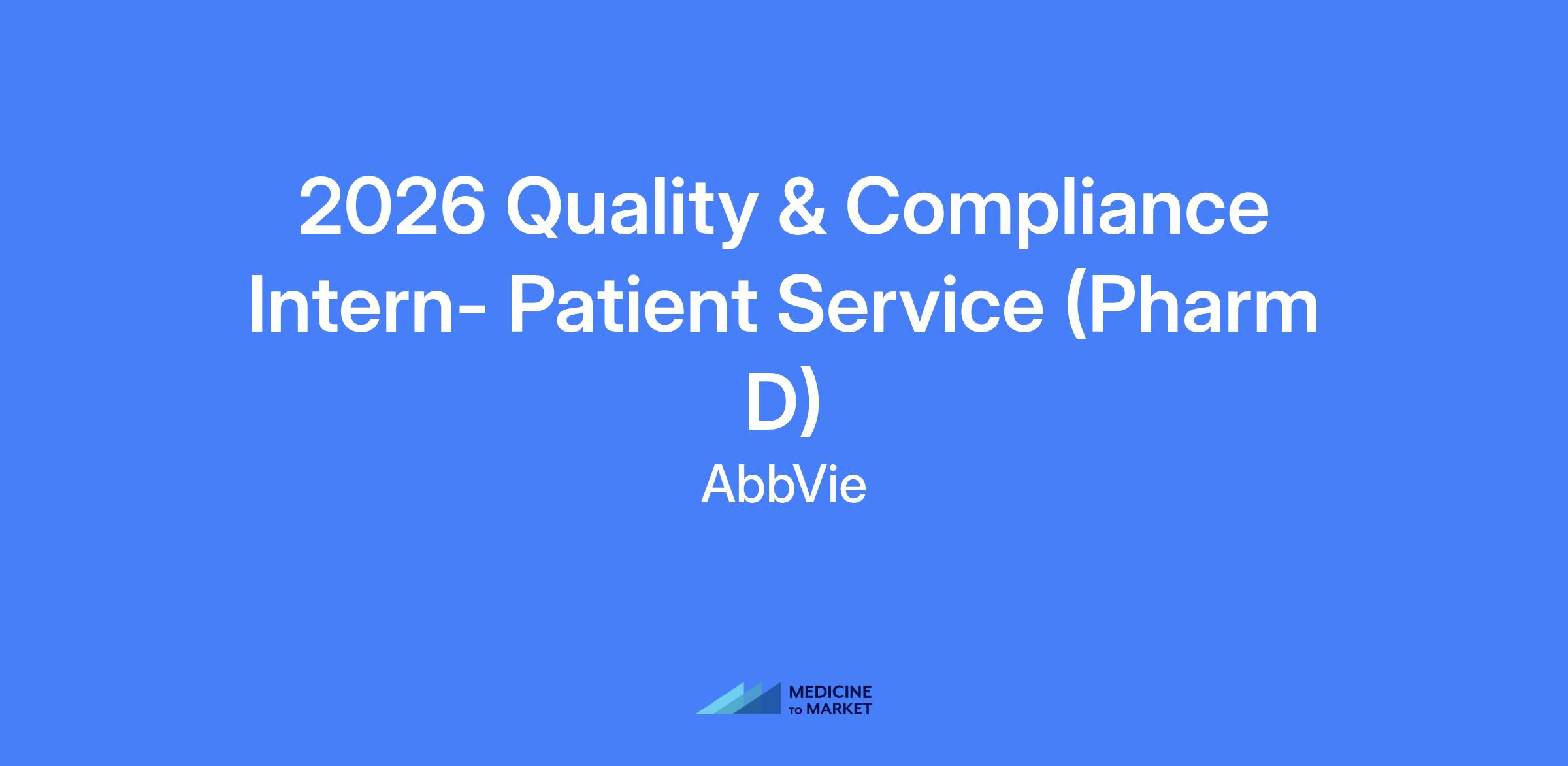 2026 Quality & Compliance Intern- Patient Service (Pharm D) reports to the Associate Director of Quality & Compliance for US Patient Services. This role is responsible for assisting in the development of quality and compliance strategies, methodologies, and roadmaps to enhance process improvements. The objective is to ensure a superior experience for both internal and external stakeholders involved in patient services across all brands.