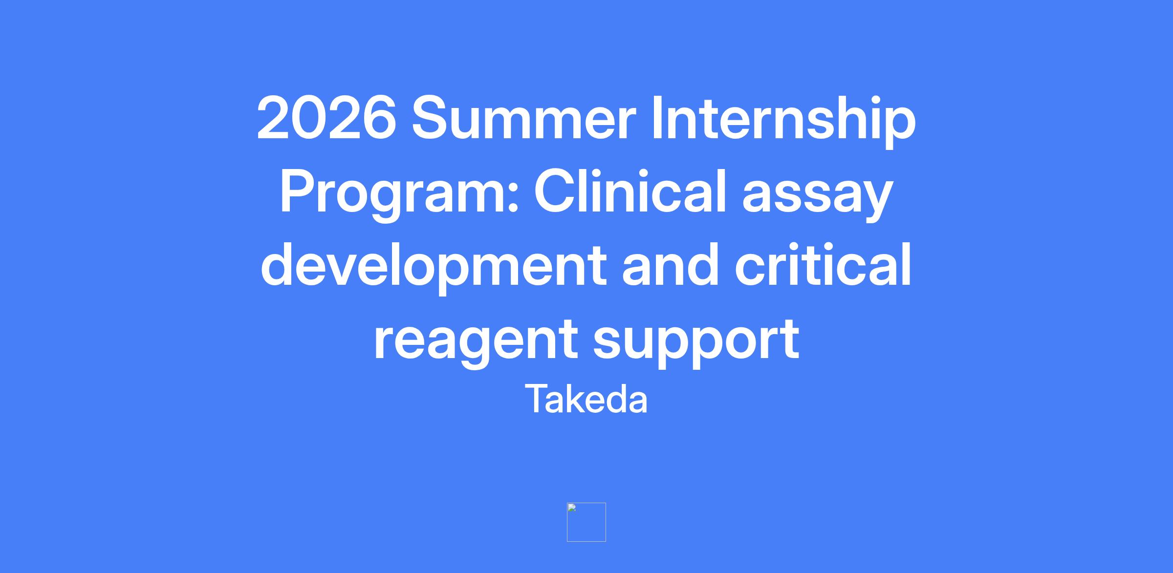 2026 Summer Internship Program: Clinical assay development and critical reagent support