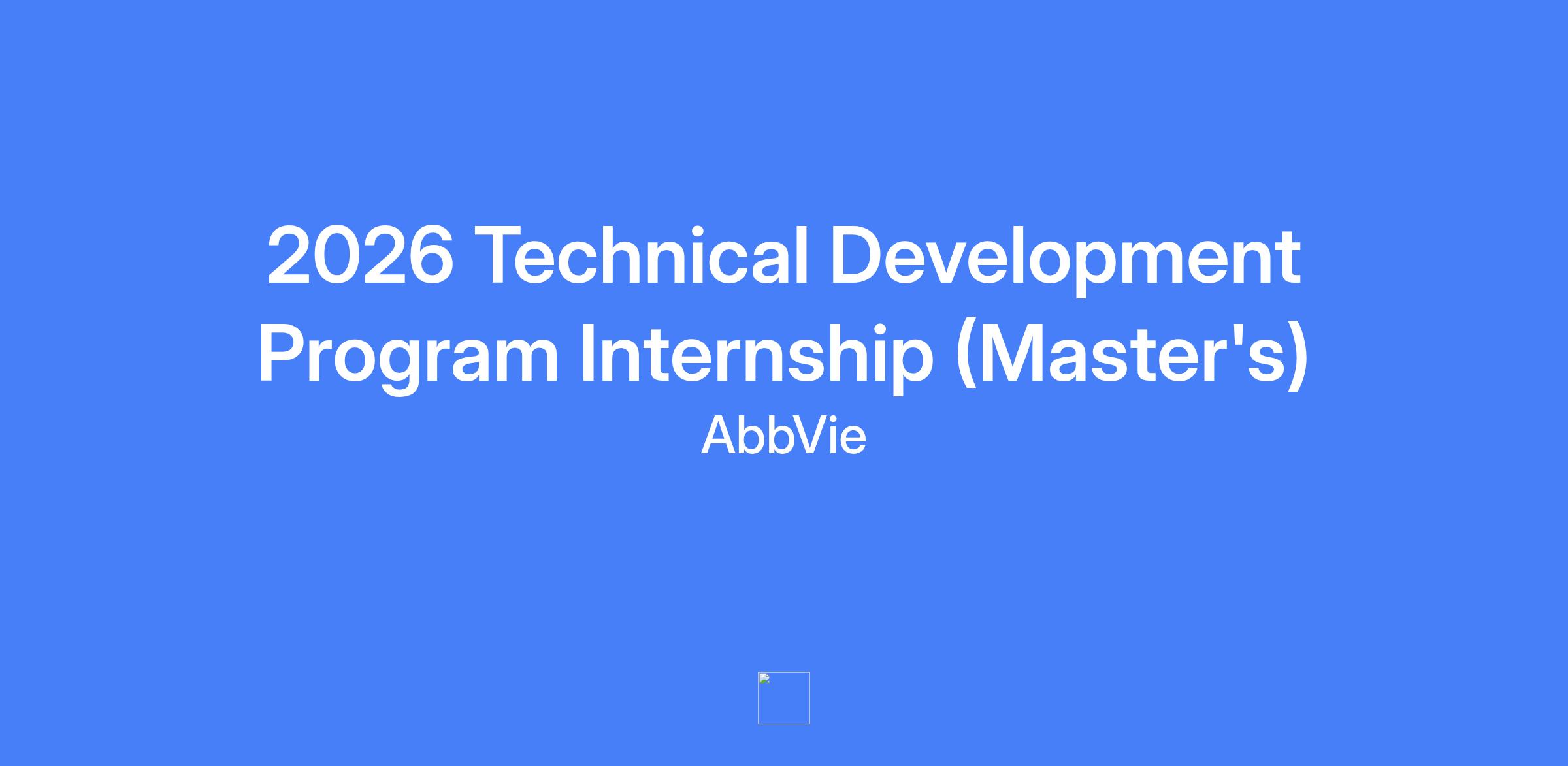 2026 Technical Development Program Internship (Master's) at AbbVie Bioresearch Center (ABC) in Worcester, MA. A paid, ten-to-twelve-week summer program offering opportunities in Manufacturing, Engineering, and Supply Chain with potential pathways into AbbVie's three-year Technical Development Program after graduation.