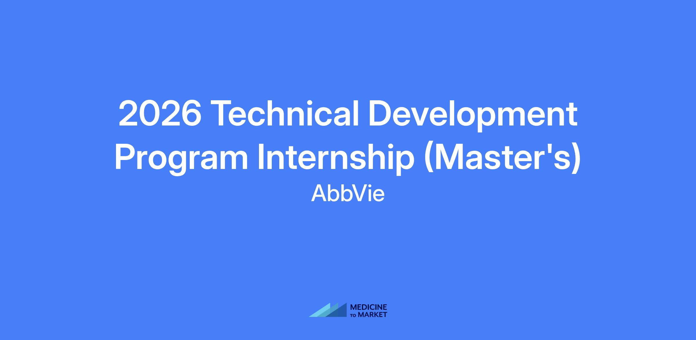 2026 Technical Development Program Internship (Master's) at AbbVie Bioresearch Center (ABC) in Worcester, MA. A paid, ten-to-twelve-week summer program offering opportunities in Manufacturing, Engineering, and Supply Chain with potential pathways into AbbVie's three-year Technical Development Program after graduation.