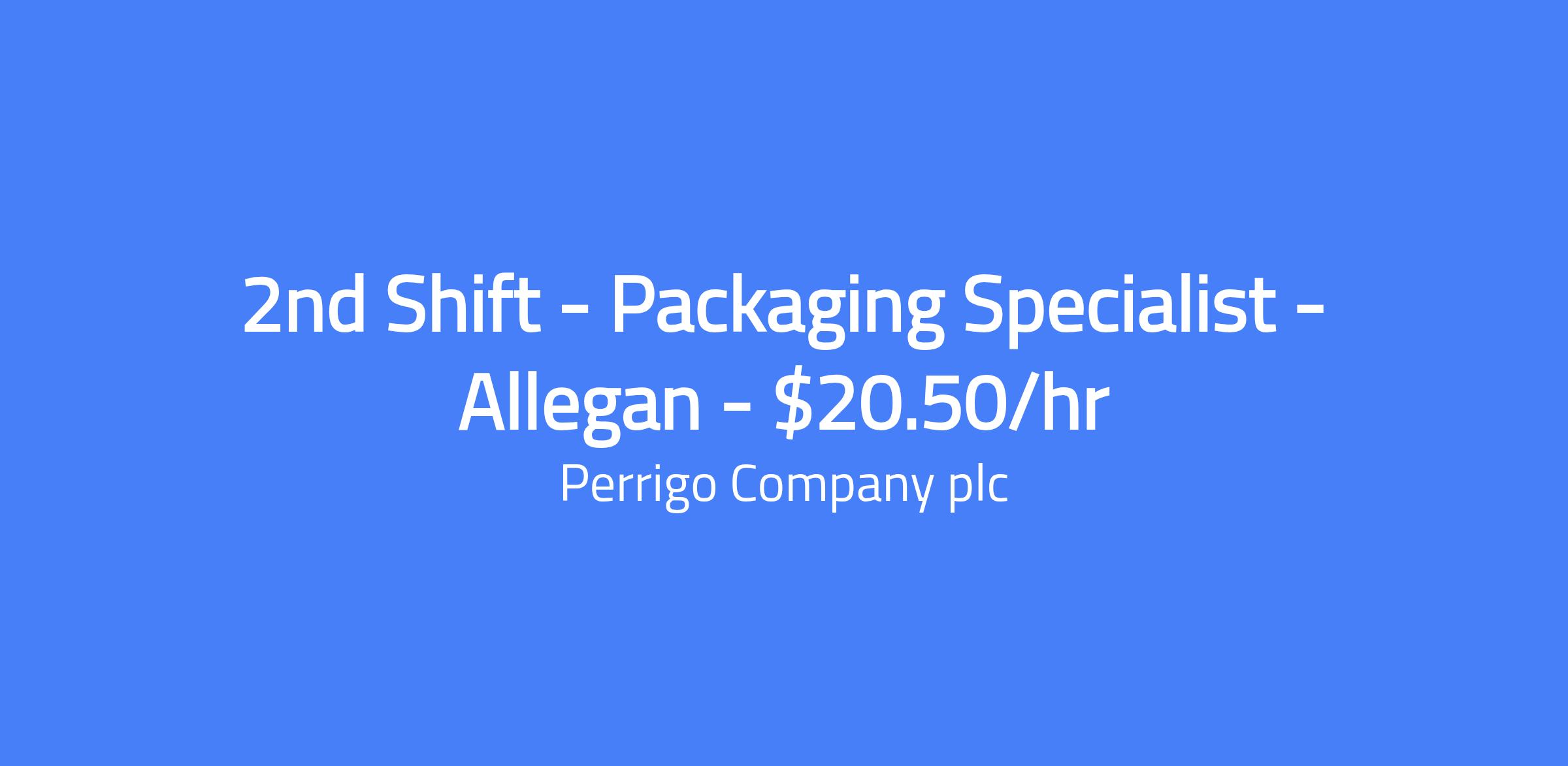 2nd Shift - Packaging Specialist - Allegan - $20.50/hr