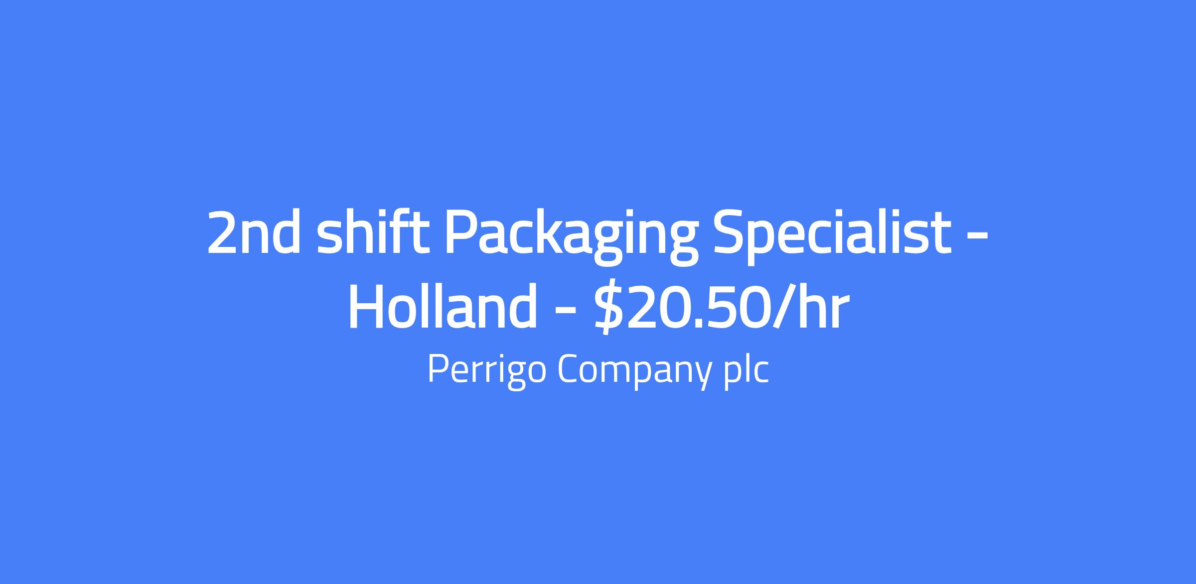 2nd shift Packaging Specialist - Holland - $20.50/hr
