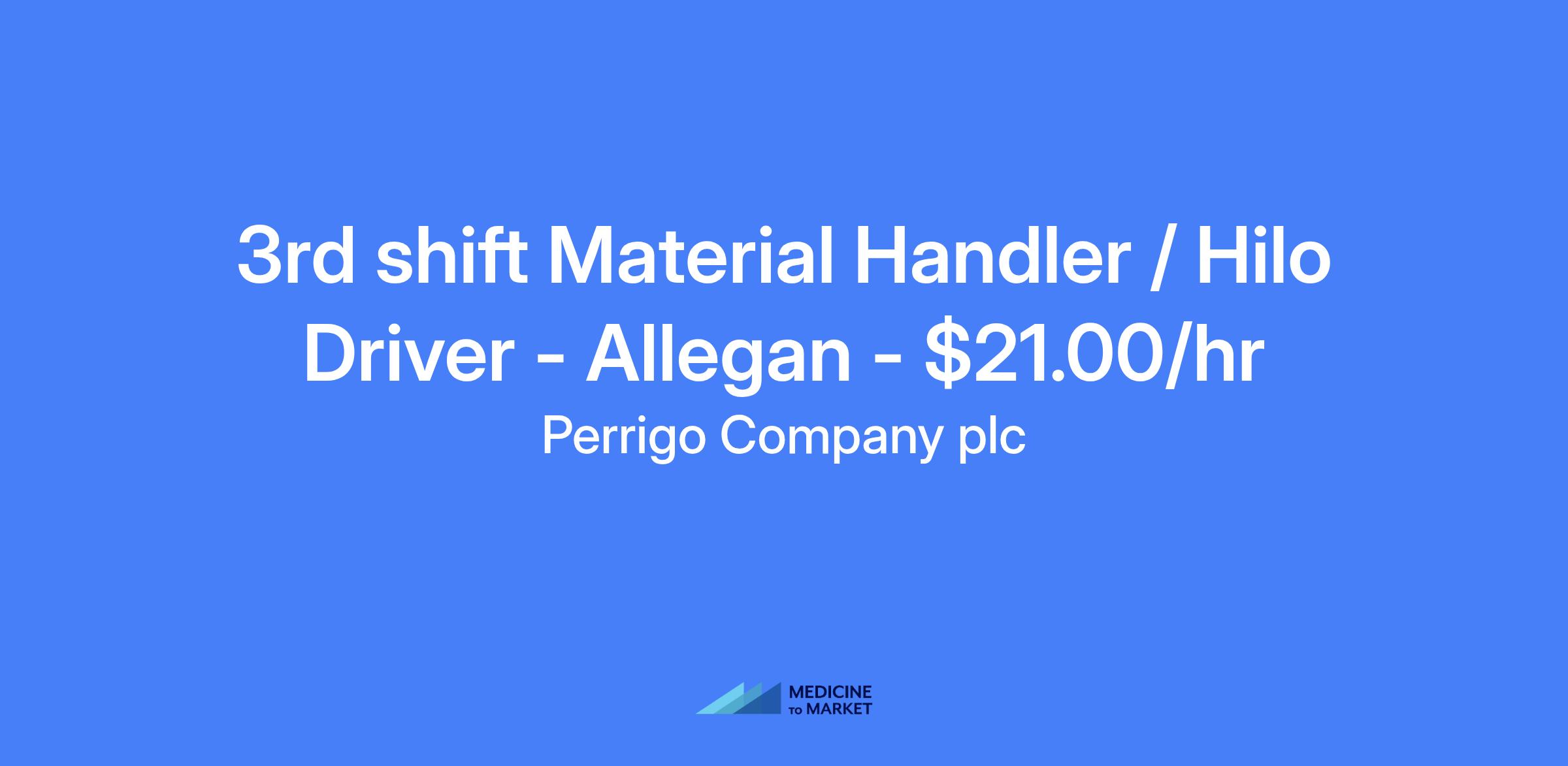 3rd shift Material Handler / Hilo Driver located in Allegan. Responsible for receiving incoming product, picking customer orders, and loading trucks for shipment. Operates powered industrial equipment (forklifts, order pickers, dock trucks) and performs physical duties required to move and prepare items for delivery.