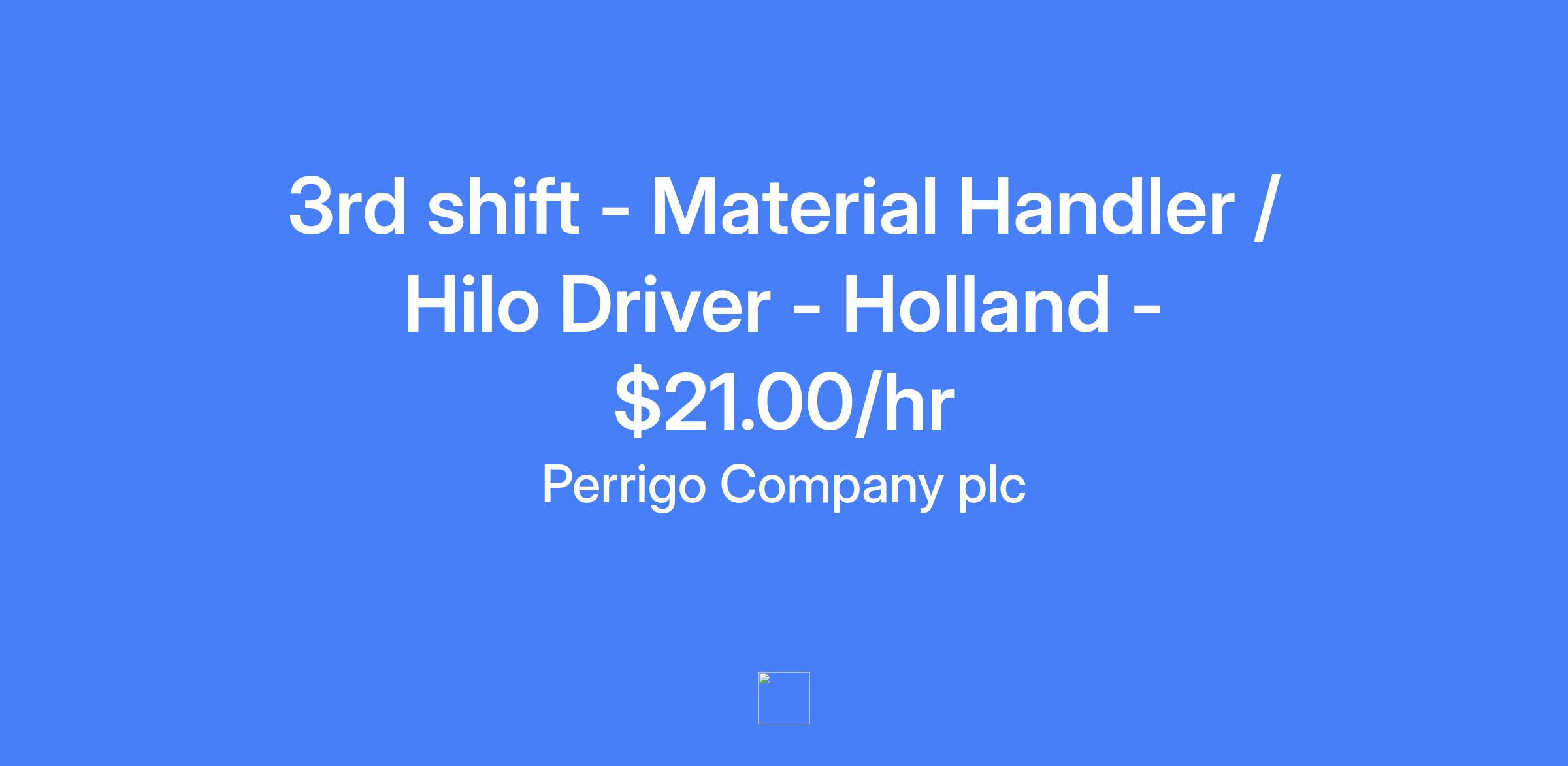 Perrigo is hiring for Distribution positions—mainly roles that will be driving our Powered Industrial Equipment. The shifts for these positions vary, but will be one of the following: 2nd or 3rd. Perrigo offers competitive wages, including off shift premiums, as well as a comprehensive benefit package that includes medical, dental, vision, wellness programs, tuition reimbursement, holiday/vacation time, and paid time off.