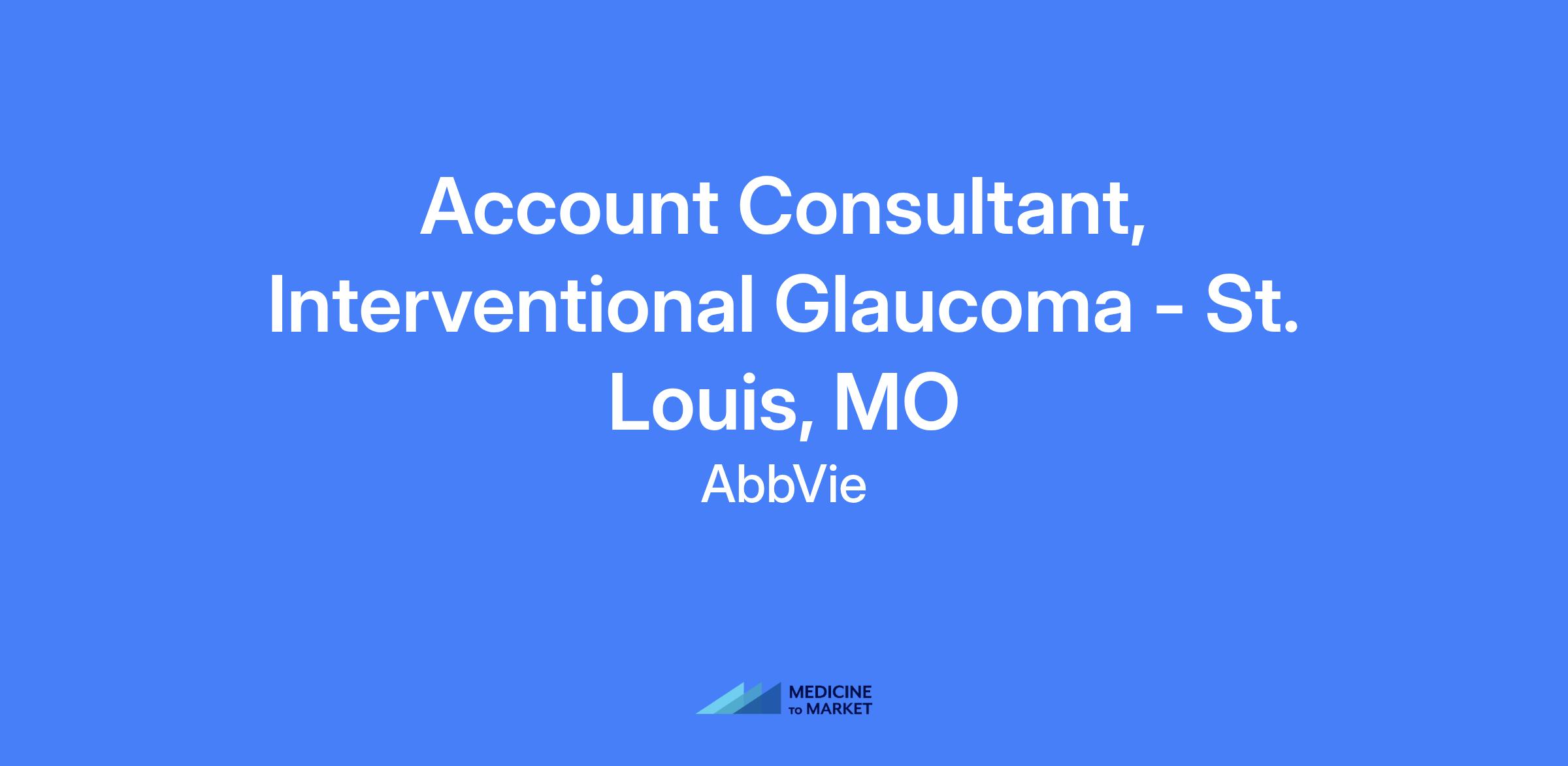 Account Consultant, Interventional Glaucoma - St. Louis, MO. This field-based role requires residence within a reasonable distance from the primary city and will be hired at a level commensurate with experience.