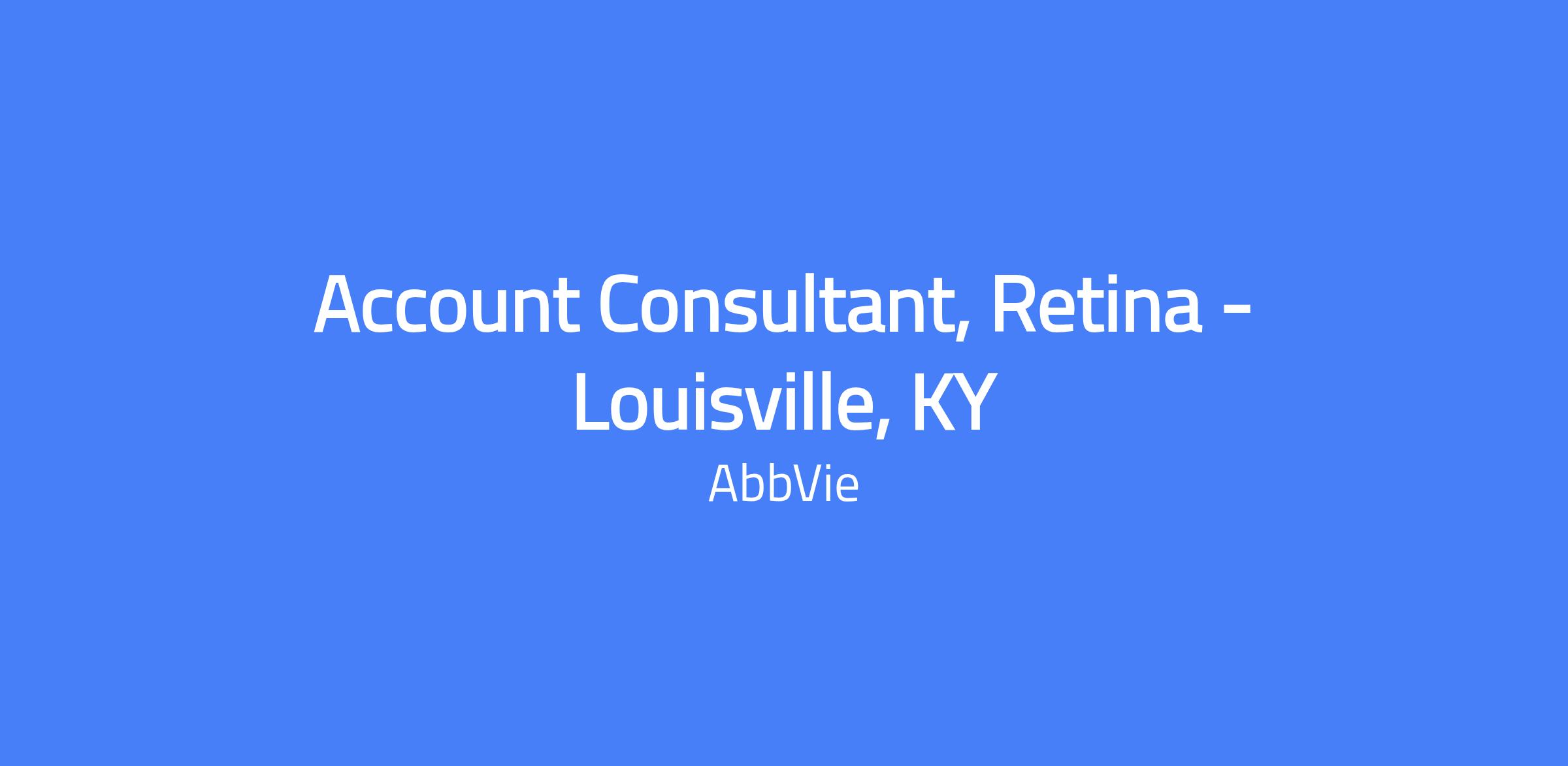 Account Consultant, Retina - Louisville, KY. This field-based role requires residing within a reasonable distance from the primary city. The role focuses on promoting AbbVie products to meet/exceed sales goals in community/private practices and hospitals/health systems, identifying customer needs, delivering expert anatomical/procedural training, educating residents and hospital personnel, and collaborating with other account specialists while ensuring compliance and effective use of AbbVie resources.