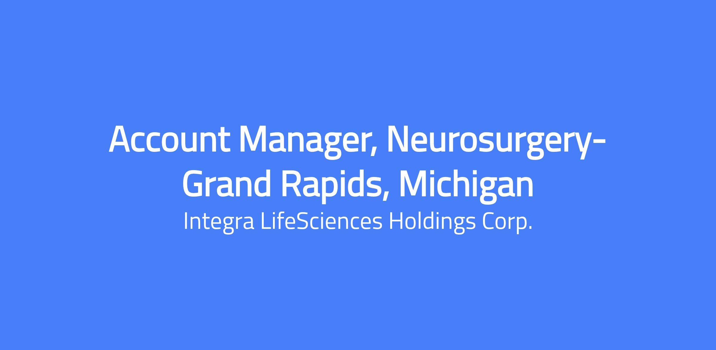 Changing lives. Building Careers. Joining us is a chance to do important work that creates change and shapes the future of healthcare. Thinking differently is what we do best. To us, change equals opportunity. Every day, our colleagues are challenging whatâs possible and making headway to innovate new treatment pathways to advance patient outcomes and set new standards of care. The Account Manager will be a responsible for Integraâs Neurosurgery product line and solely responsible for sales of these products within a defined territory. Primary responsibility will be to achieve or exceed defined territory sales revenue targets through strategic planning, relationship building, new account targeting, extensive product knowledge and exceptional customer service. The Account Manager will call on multiple call points/specializations with 90% of time spent in the Operating Room. The Account Manager will work across Integra functional areas to ensure customer satisfaction. The Account Manager will work with their team to ensure that regional/corporate financial goals are met. Develop new business with customers and accounts previously not sold to Attain monthly and quarterly sales objectives as defined by regional manager and corporate senior management Develop a formal business plan at the beginning of each fiscal year to be followed by subsequent monthly and quarterly territory reports aimed at achieving territory sales goals Work with peers when called up to support case coverage and inventory requests Take initiative to identify new business opportunities Identify product improvement opportunities for sales, marketing and product development teams. Maintain high level of technical, product and disease state knowledge Provide a consultative role in the OR environment in accordance with specific product indications Operate within defined budgets and strictly with in accordance with Corporate policies and procedures Strictly adhere to the policies and procedures within the Advamed Code of Conduct and the Sunshine Act Perform sales administrative duties in a timely manner and as defined by management. The requirements listed below are representative of the knowledge, skill, and/or ability required for this position. Bachelorâs Degree or an equivalent combination of education and/or experience is required; business or science-related degree preferred Minimum two yearsâ experience business-to-business sales (or similar) Two years surgical device or other medical sales preferred Excellent analytical, written, and verbal skills. Confidence to communicate with established physicians and other surgical personnel Strong negotiation and selling skills. Interpersonal and political savvy within hospital setting Track record of developing sales plans and executing Team player Physically capable of standing for long hours in the Operating Room during cases. Must be able to lift and carry 65 lbs. Highly competitive with a strong track record of success Must possess a valid driverâs license Our salary ranges are determined by role, level, and location. Individual pay is determined by several factors including job-related skills, experience, and relevant education or training. In addition to base pay, employees may be eligible for bonus, commission, equity or other variable compensation. Your recruiter can share more about the specific salary range for your preferred location during the hiring process. Additional Description for Pay Transparency: Subject to the terms of their respective plans, employees and/or eligible dependents are eligible to participate in the following Company sponsored employee benefit programs: medical, dental, vision, life insurance, short- and long-term disability, business accident insurance, and group legal insurance, and savings plan (401(k)). Subject to the terms of their respective policies and date of hire, Employees are eligible for the following https://jobs.integralife.com/total-rewards/ Integra LifeSciences is an equal opportunity employer, and is committed to providing equal employment opportunities to all qualified applicants and employees regardless of race, marital status, color, religion, sex, age, national origin, sexual orientation, physical or mental disability, or protected veteran status. This site is governed solely by applicable U.S. laws and governmental regulations. If you'd like more information on your rights under the law, please see the following notices: EEO Is the Law | EOE including Disability/Protected Veterans Integra LifeSciences is committed to provide qualified applicants and employees who are disabled veterans or individuals with disabilities with needed reasonable accommodations in accordance with the ADA. If you have difficulty using our online system due to a disability and need an accommodation, please email us at careers@integralife.com. Unsolicited Agency Submission Integra LifeSciences does not accept unsolicited assistance from search firms for employment opportunities. All CVs/resumes submitted by search firms to any employee at our company without a valid written search agreement in place for this position will be deemed the sole property of our company. No fee will be paid in the event a candidate is hired by our company as a result of an agency referral where no pre-existing agreement is in place. A formal written agreement is required before engaging any agency, and it must be executed and authorized by the Vice President, Talent Acquisition. Where agency agreements are in place, introductions (the initial sharing of a candidateâs name, resume, or background) are position-specific and may only occur within the scope of that approved agreement. Please, no phone calls or emails. Integra - Employer Branding from Integra LifeSciences on Vimeo Changing Lives. Building Careers. Integra LifeSciences, a world leader in medical technology, is dedicated to limiting uncertainty for surgeons, so they can concentrate on providing the best pa