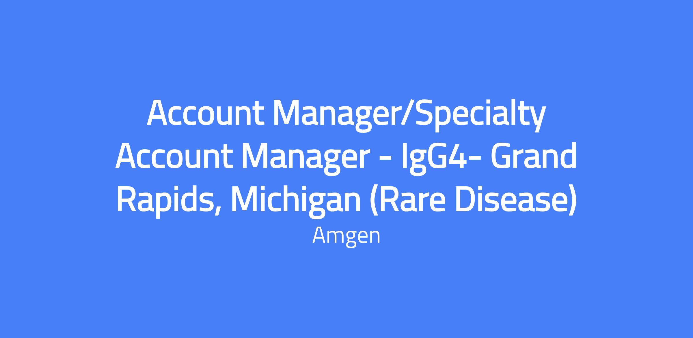 Account Manager/Specialty Account Manager - IgG4- Grand Rapids, Michigan (Rare Disease). Territory includes Grand Rapids, Lansing, and Kalamazoo. Responsible for representing UPLIZNA to physicians and health care professionals, establishing product sales, and performing total territory account management.
