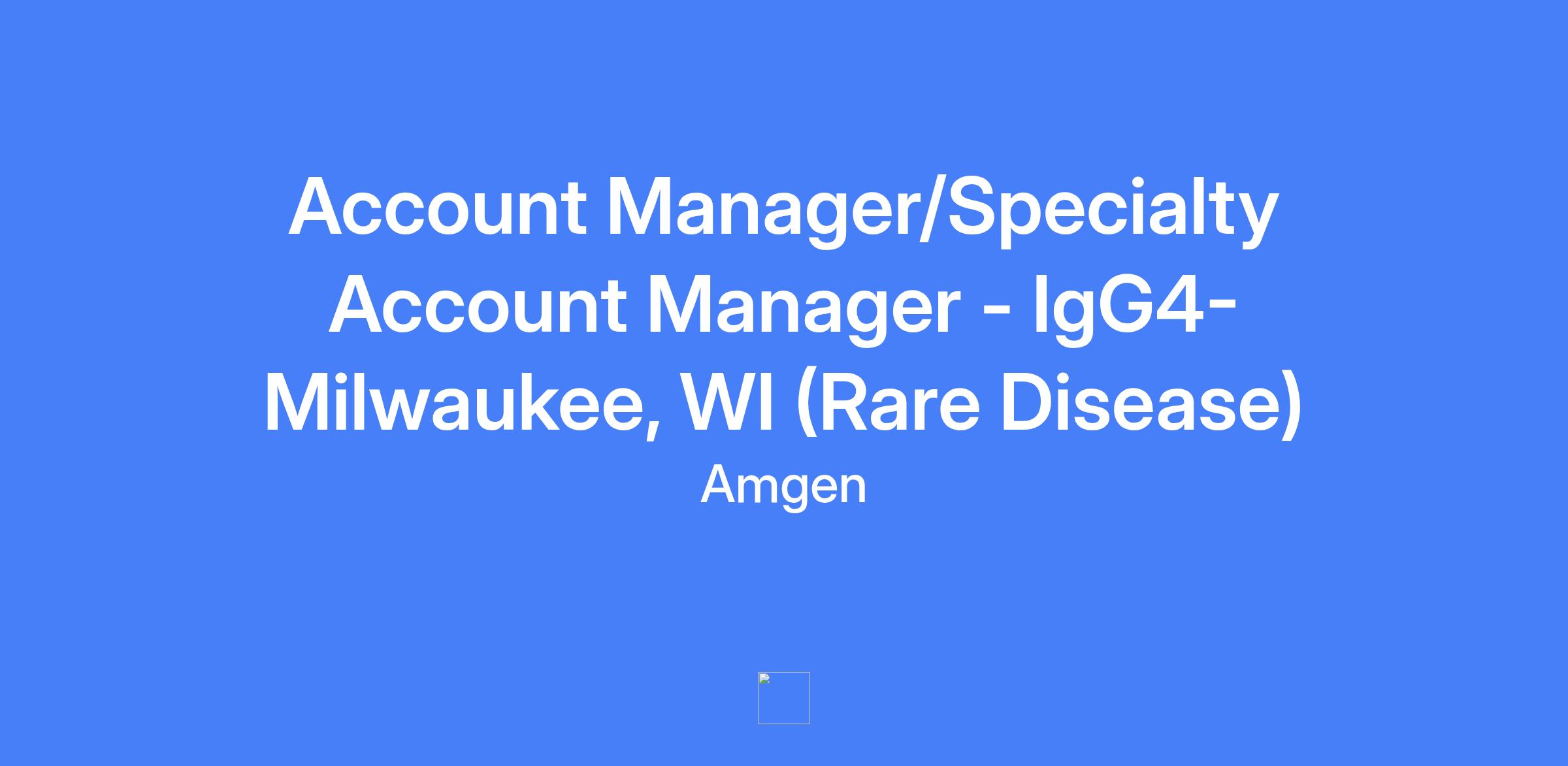 Account Manager/Specialty Account Manager - IgG4- Milwaukee, WI (Rare Disease). Territory includes Milwaukee, Madison, and Green Bay Wisconsin.