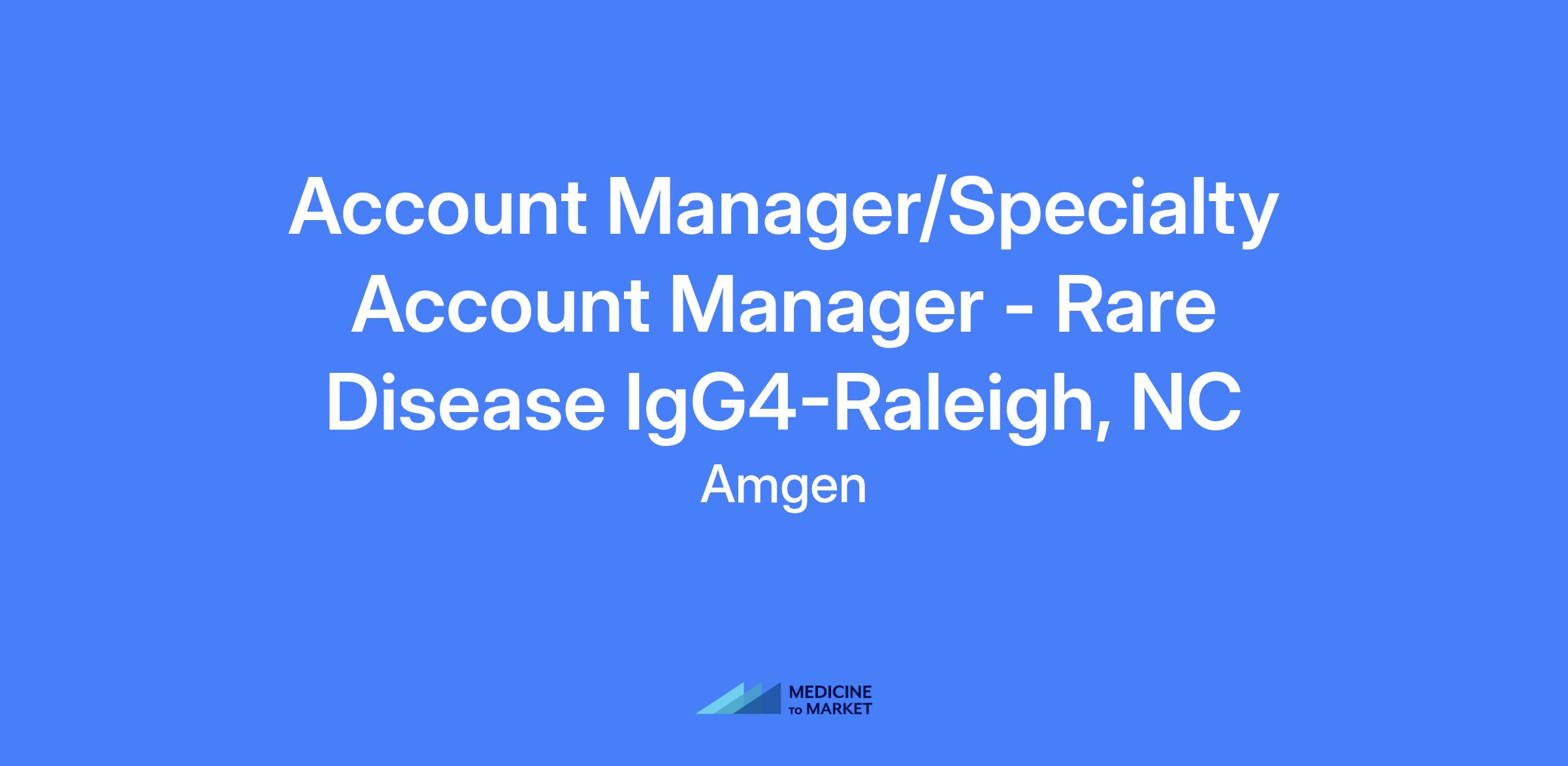 Account Manager/Specialty Account Manager - Rare Disease IgG4-Raleigh, NC. Geography includes Raleigh, NC. Relocation is not offered for this role.