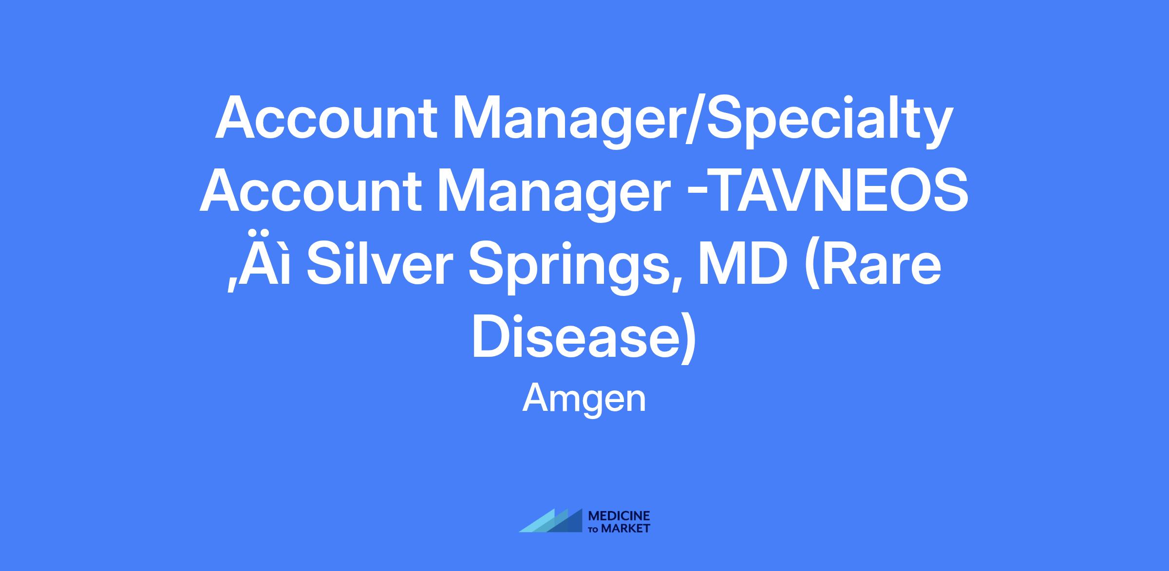 Account Manager/Specialty Account Manager for TAVNEOS in Silver Springs, MD (Rare Disease). Represent Tavneos to physicians and healthcare professionals, drive product utilization, and deliver comprehensive account management within a designated territory. Serve as a central point of contact for educating medical professionals and external stakeholders on disease state awareness and product information to support optimal patient care.