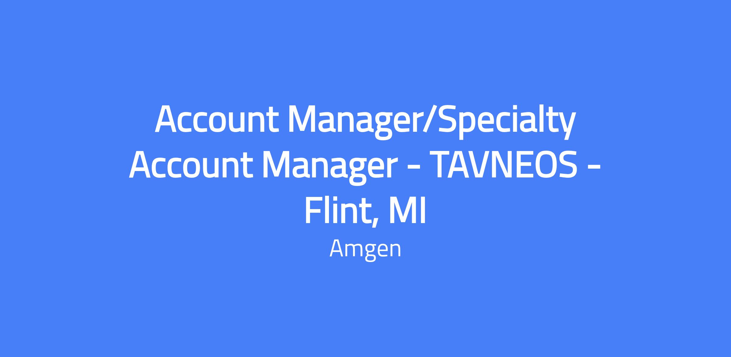 Account Manager/Specialty Account Manager for Tavneos in Flint, MI, with a territory that includes Flint, Saginaw, Northern Michigan, Port Huron, Rochester Hills, and Bloomfield Hills. responsible for educating physicians and healthcare professionals, establishing product demand, and delivering comprehensive account management within the designated territory.