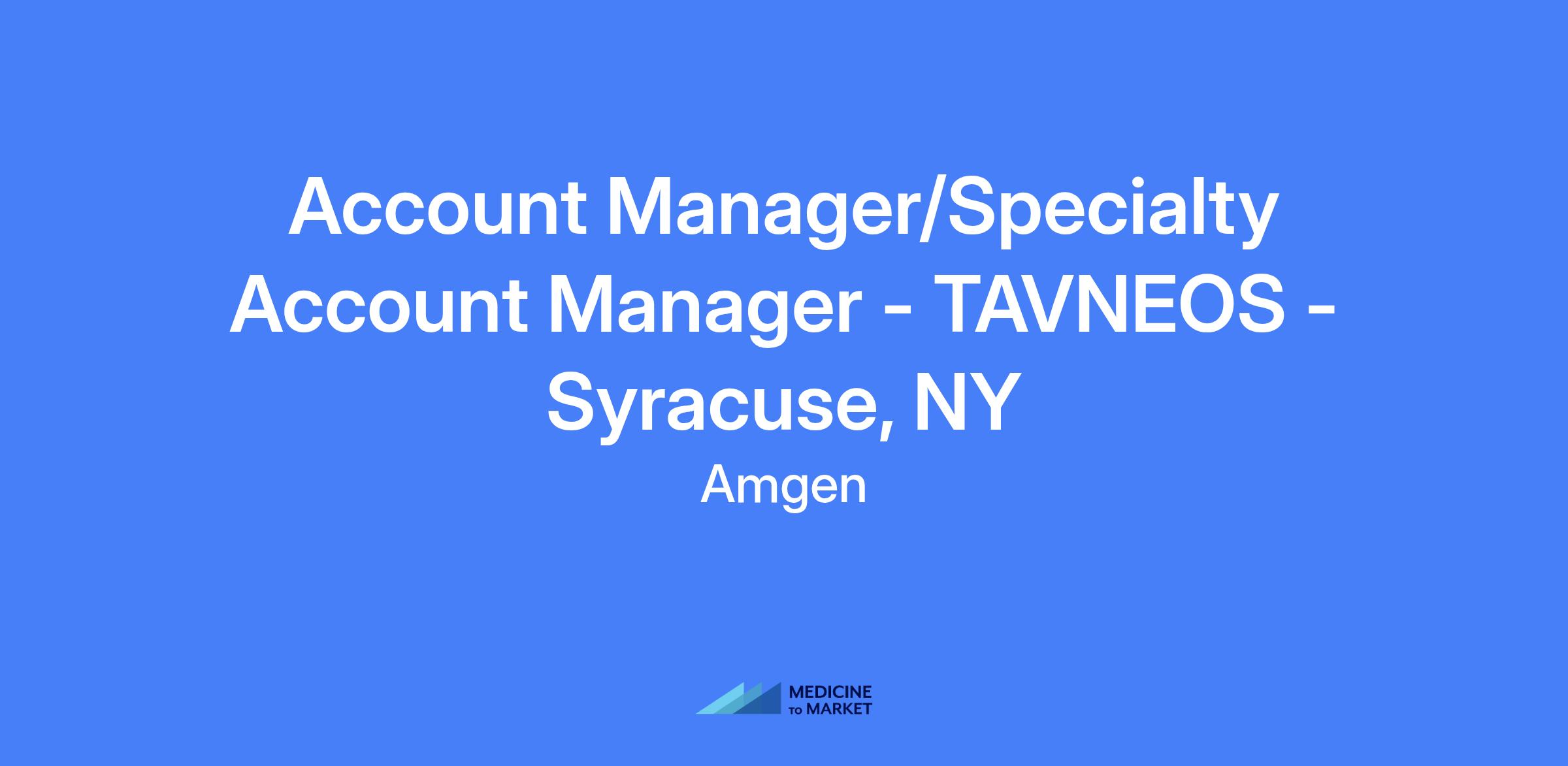 Account Manager/Specialty Account Manager - TAVNEOS in Syracuse, NY. Territory includes Utica, NY and Binghamton, NY. Represents Tavneos to physicians and healthcare professionals, delivering comprehensive account management within a designated territory and educating medical professionals and external stakeholders on disease state awareness and product information to support optimal patient care. Drives product utilization while addressing the needs of each account and coordinates cross-functional field teams to ensure access, education, and support for rare disease treatments.