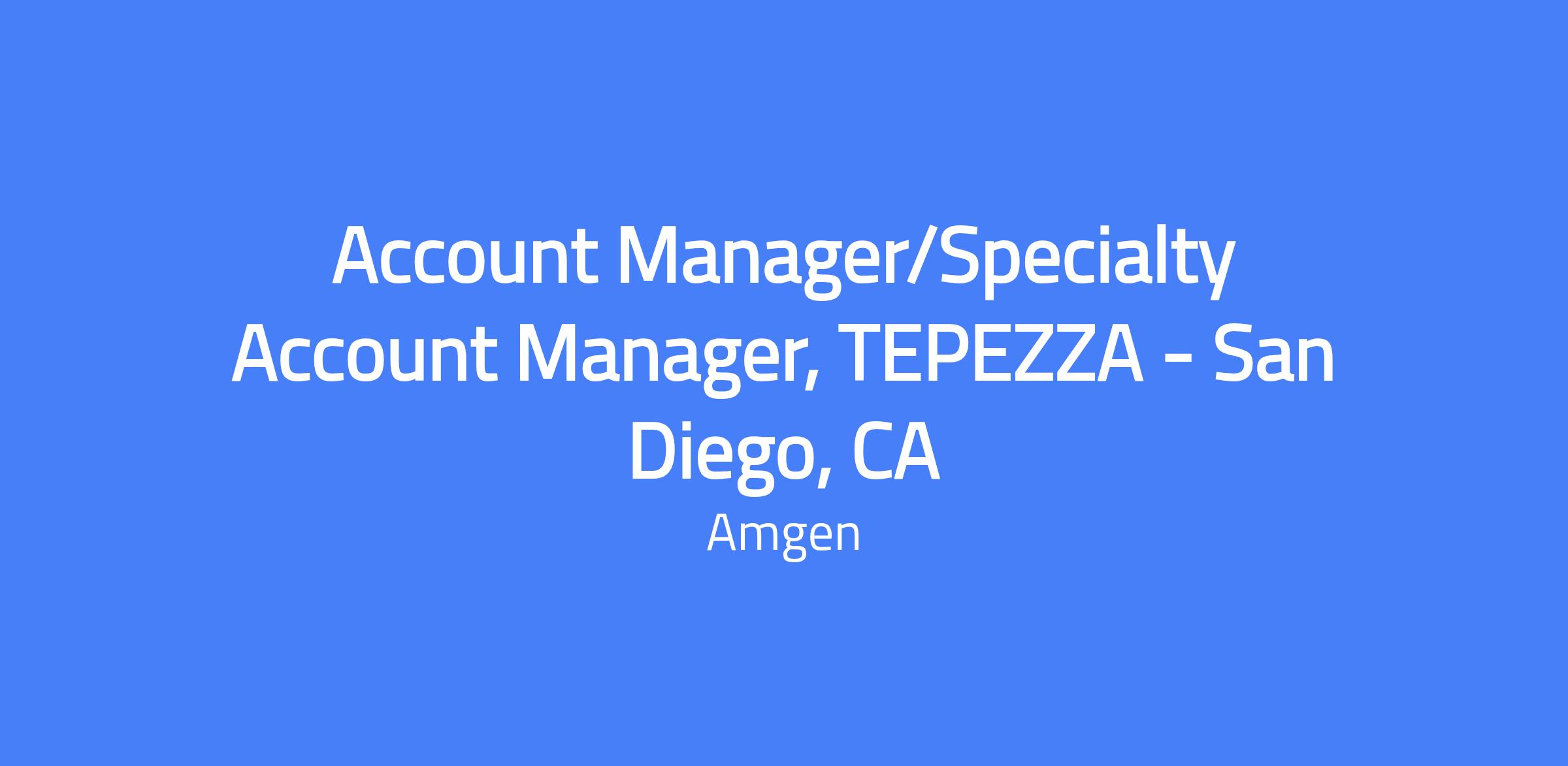Account Manager / Specialty Account Manager for TEPEZZA in San Diego, CA. In this role you will represent TEPEZZA to physicians and health care professionals, establish product sales, and manage total territory account responsibilities. You will drive product demand, coordinate with cross-functional teams to address account needs, and develop strong customer relationships to understand and meet customer goals. Location: San Diego, CA; travel approximately 80% of the time.