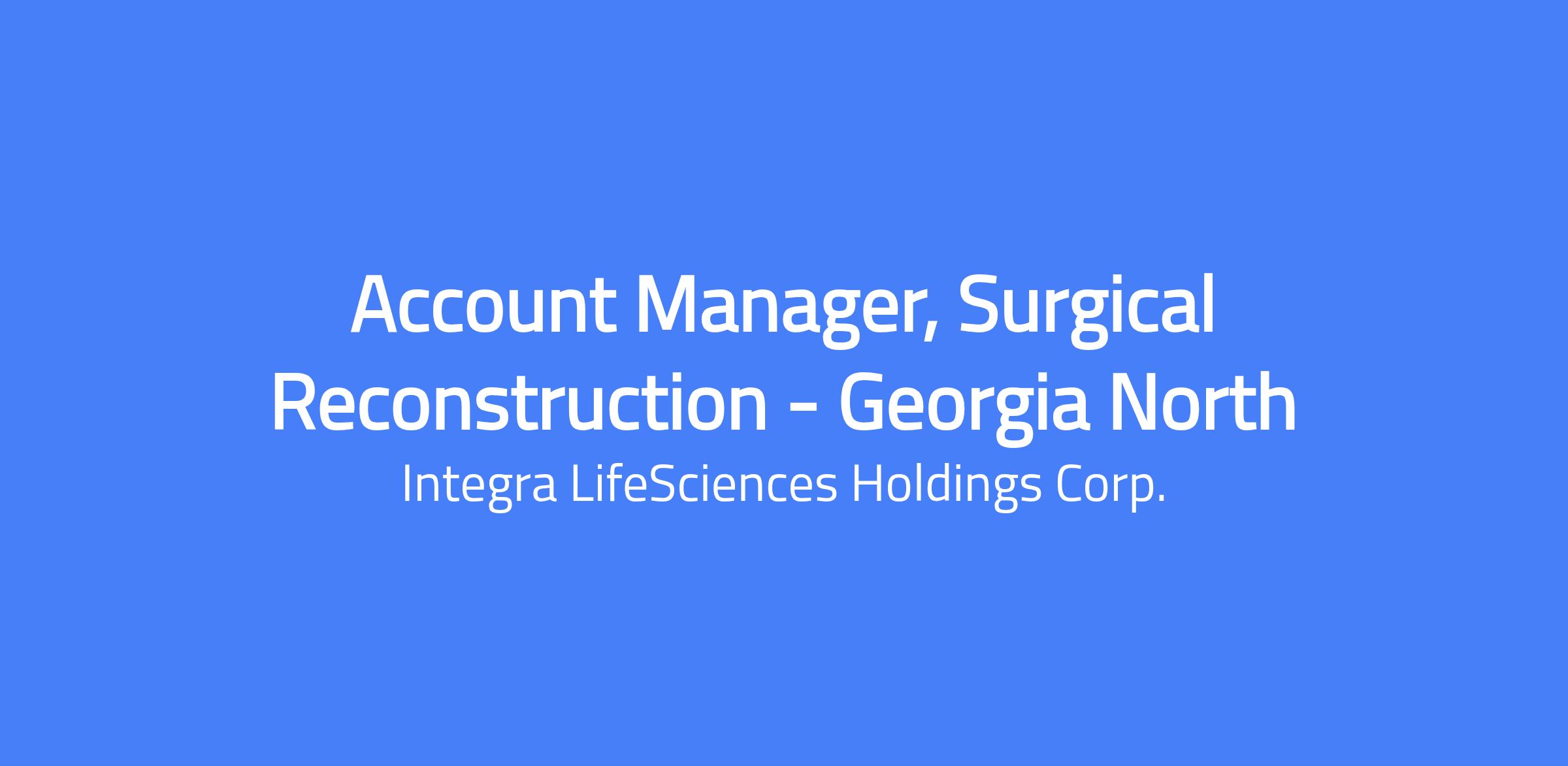 Changing lives. Building Careers. Joining us is a chance to do important work that creates change and shapes the future of healthcare. Thinking differently is what we do best. To us, change equals opportunity. Every day, our colleagues are challenging whatâs possible and making headway to innovate new treatment pathways to advance patient outcomes and set new standards of care. Responsible for driving sales growth in Surgical Reconstruction product line by executing territory plans, educating clinicians, and supporting operating room needs. The Account Manager will call on multiple call points/surgical specialties. Products include, but are not limited to: Plastic & Reconstructive Surgery; Hernia & Abdominal Wall Reconstructive Surgery REPORTING & MANAGEMENT SCOPE Under direct supervision of Surgical Reconstruction Regional Business Manager KEY RESPONSIBILITIES Build and maintain relationships with surgeons, clinicians, hospital administrators, and internal stakeholders. Work across Integra functional areas to ensure customer satisfaction. Collaborate with RBM to target, set goals, and create plans to meet/exceed revenue expectations. Develop a formal business plan at the beginning of each fiscal year to be followed by subsequent monthly and quarterly territory reports aimed at achieving territory sales goals. Educate and influence targeted customers. Work with peers when called to support case coverage and inventory requests. Apply strong negotiation and objectionâhandling skills. Exhibit strong leadership and people skills. Demonstrate strong work ethic, timeâmanagement, and organizational skills. Communicate scientific/clinical benefits of products. Maintain high level of technical product, surgical technique, and disease state knowledge. Identify product improvement opportunities for sales, marketing and product development teams. Provide a consultative role in the OR environment in accordance with specific product indications. Operate within defined budgets and strictly within accordance with corporate policies and procedures. Strictly adhere to the policies and procedures within the Advanced Code of Conduct and the Sunshine Act. Identify trade show and customer education opportunities to provide resources and solutions to key industry groups REQUIRED SKILLS & MINIMUM QUALIFICATIONS Education Bachelorâs Degree or an equivalent combination of education and/or experience is required; business or science-related degree preferred Experience Bachelorâs Degree or an equivalent combination of education and/or experience is required; business or science-related degree preferred Minimum two yearsâ experience business-to-business sales (or similar) Operating room experience is necessary; plastic surgery experience preferred. Minimum of two years of surgical device or other medical sales preferred Skills & Competencies Excellent analytical, written and verbal skills. Conflict resolution and problemâsolving skills. Ability to communicate scientific/clinical features and benefits. Strong emotional intelligence. Interpersonal and political savvy within hospital setting Negotiation and objection handling skills. Track record of developing sales plans and successfully executing Team player Leadership and people skills. Work ethic, time management, organizational skills. Tools And Equipment Used This role requires regular use of tools and equipment relevant to the work environment. Examples include: General office equipment (computer, phone, printer). CRM platforms. Internal reporting tools. Clinical demonstration tools. PHYSICAL REQUIREMENTS The physical requirements listed below represent the motor and physical abilities necessary to successfully perform the essential duties of this position. In accordance with the Americans with Disabilities Act (ADA), reasonable accommodations may be made to enable individuals with disabilities to perform these duties. While performing the responsibilities of this role, the employee is expected to: Physically capable of standing for long hours in the Operating Room during cases. Must be able to lift and carry 50lbs Must possess a valid driver's license ADVERSE WORKING CONDITIONS There are no adverse working conditions associated with this position. DISCLAIMER The responsibilities and duties outlined above are intended to illustrate the general nature and level of work performed by individuals assigned to this position. They do not represent an exhaustive list of all tasks that may be required. Additional duties may be assigned as appropriate to meet business needs. This job description does not constitute a contract of employment and is subject to change at the discretion of the employer, based on evolving organizational requirements and role expectations. #LI-NN1 Our salary ranges are determined by role, level, and location. Individual pay is determined by several factors including job-related skills, experience, and relevant education or training. In addition to base pay, employees may be eligible for bonus, commission, equity or other variable compensation. Your recruiter can share more about the specific salary range for your preferred location during the hiring process. Additional Description for Pay Transparency: Subject to the terms of their respective plans, employees and/or eligible dependents are eligible to participate in the following Company sponsored employee benefit programs: medical, dental, vision, life insurance, short- and long-term disability, business accident insurance, and group legal insurance, and savings plan (401(k)). Subject to the terms of their respective policies and date of hire, Employees are eligible for the following https://jobs.integralife.com/total-rewards/ Integra LifeSciences is an equal opportunity employer, and is committed to providing equal employment opportunities to all qualified applicants and employees regardless of race, marital status, color, religion, sex, age, national origin, sexual orientation, physica