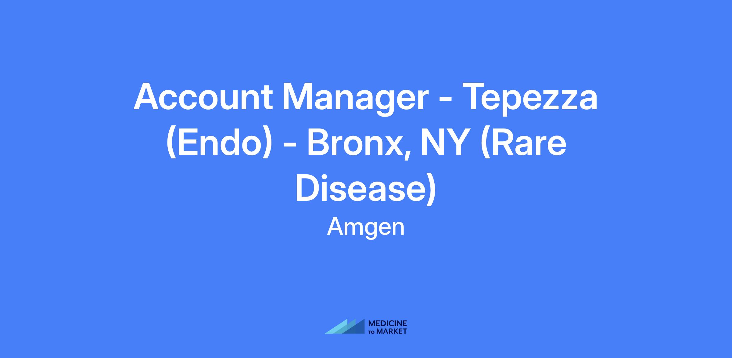 Account Manager/Specialty Account Manager - TEPEZZA. Territory covers Bronx, NY and White Plains, NY. Represent TEPEZZA to physicians and health care professionals, establish product sales, and perform total territory account management.