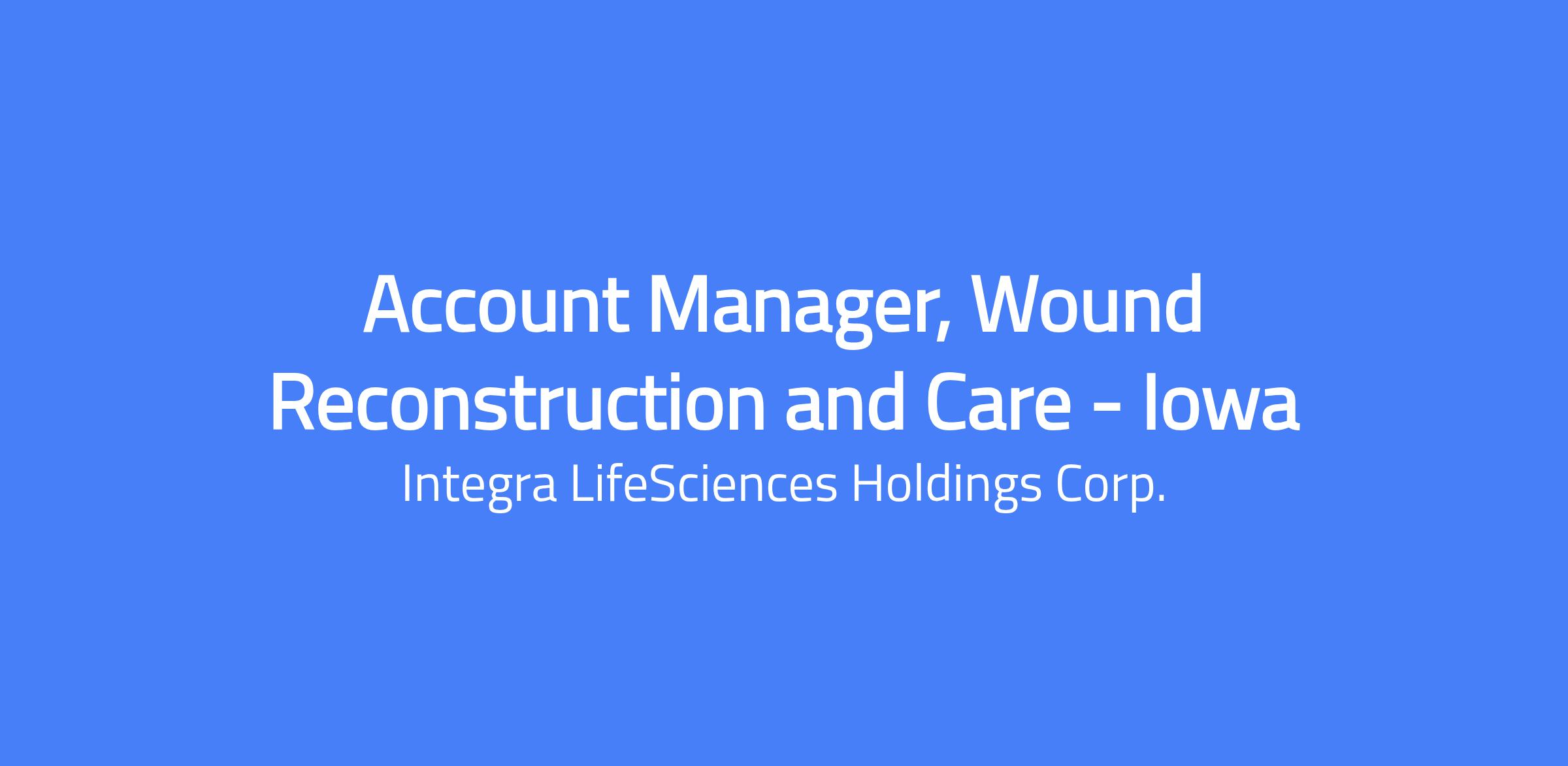 Changing lives. Building Careers. Joining us is a chance to do important work that creates change and shapes the future of healthcare. Thinking differently is what we do best. To us, change equals opportunity. Every day, our colleagues are challenging whatâs possible and making headway to innovate new treatment pathways to advance patient outcomes and set new standards of care. Job Description The Wound Reconstruction and Care Account Manager will be a responsible for Integraâs Integra Skin, PriMatrix and OmniGraft, product lines and solely responsible for supporting the sales of these products for a defined territory within the Hospital OR/Surgery and post-acute wound care setting. Primary responsibility will be to achieve or exceed defined territory sales revenue targets through strategic planning, relationship building, new account targeting, extensive product knowledge and exceptional customer service. The Account Managers will call on multiple call points/specializations with majority of time spent in the Operating Room. The Account Manager will work across Integra functional areas to ensure customer satisfaction. The Account Manager will work with their team to ensure that regional/corporate financial goals are met. ESSENTIAL DUTIES AND RESPONSIBILITIES Develop new business with customers and accounts previously not sold to Attain monthly and quarterly sales objectives as defined by regional manager and corporate senior management Develop a formal business plan at the beginning of each fiscal year to be followed by subsequent monthly and quarterly territory reports aimed at achieving territory sales goals Work with peers when called up to support case coverage and inventory requests Take initiative to identify new business opportunities Identify product improvement opportunities for sales, marketing and product development teams. Maintain high level of technical, product and disease state knowledge Provide a consultative role in the OR environment in accordance with specific product indications Operate within defined budgets and strictly with in accordance with Corporate policies and procedures Strictly adhere to the policies and procedures within the Advamed Code of Conduct and the Sunshine Act Perform sales administrative duties in a timely manner and as defined by management. QUALICATIONS/EDUCATION & EXPERIENCE Bachelorâs degree or an equivalent combination of education (Associate degree or Medical Certification -CST, PT, etc.) and/or experience is required Minimum of 4 years of professional and/or related experience is required. Candidate must be local to Iowa City/Cedar Rapids/Eastern Iowa Prior experience working in an operating room environment is required. Valid driver's license issued in the United States Willing and able to work outside of normal business hours Ability to travel on occasional weekends and/or overnight travel. Residence in or the ability to relocate to the posted territory Strong technical product knowledge of surgical instruments, procedures, protocols and solutions Strong interpersonal communication, influencing, critical thinking and problem-solving skills required. A qualified candidate will be efficient, organized, self-motivated, positive and pro-active Available before and after traditional work hours (9-5) PHYSICAL REQUIREMENTS The physical requirements listed in this section include, but are not limited, to the motor/physical abilities and skills require of this position in order to successfully undertake the essential duties and responsibilities of this position. In accordance with the Americans with Disabilities Act (ADA), reasonable accommodations may be made to empower individuals with disabilities to undertake the essential duties and responsibilities of the position. While undertaking the essential duties and responsibilities of the position, the employee must repeatedly sit, listen, speak, and travel by air, train and automobile. The employee is required to go to all areas of a hospital or similar medical facilities. The employee may be required to periodically lift and/or move up to 65 lbs. ADVERSE WORKING CONDITIONS The adverse working conditions listed in this section include, but are not limited to, those environmental conditions to which the employee may be exposed while undertaking the essential duties and responsibilities of this position, which is that of a general plant environment. Possible exposure to hospital pathogens. SELECTION GUIDELINES Formal application, rating of education and experience; oral interview and reference check; job related tests may be required. DISCLAIMER The duties listed above are intended only as illustrations of the various types of work that may be performed. The omission of specific statements of duties does not exclude them from the position if the work is similar, related, or a logical assignment to the position. The job description does not constitute an employment agreement between the employer and employee and is subject to change by the employer as the needs of the employer and requirements of the job change. Our salary ranges are determined by role, level, and location. Individual pay is determined by several factors including job-related skills, experience, and relevant education or training. In addition to base pay, employees may be eligible for bonus, commission, equity or other variable compensation. Your recruiter can share more about the specific salary range for your preferred location during the hiring process. Additional Description for Pay Transparency: Subject to the terms of their respective plans, employees and/or eligible dependents are eligible to participate in the following Company sponsored employee benefit programs: medical, dental, vision, life insurance, short- and long-term disability, business accident insurance, and group legal insurance, and savings plan (401(k)). Subject to the terms of their respective policies and date of hire, Employees are eligible for the follow