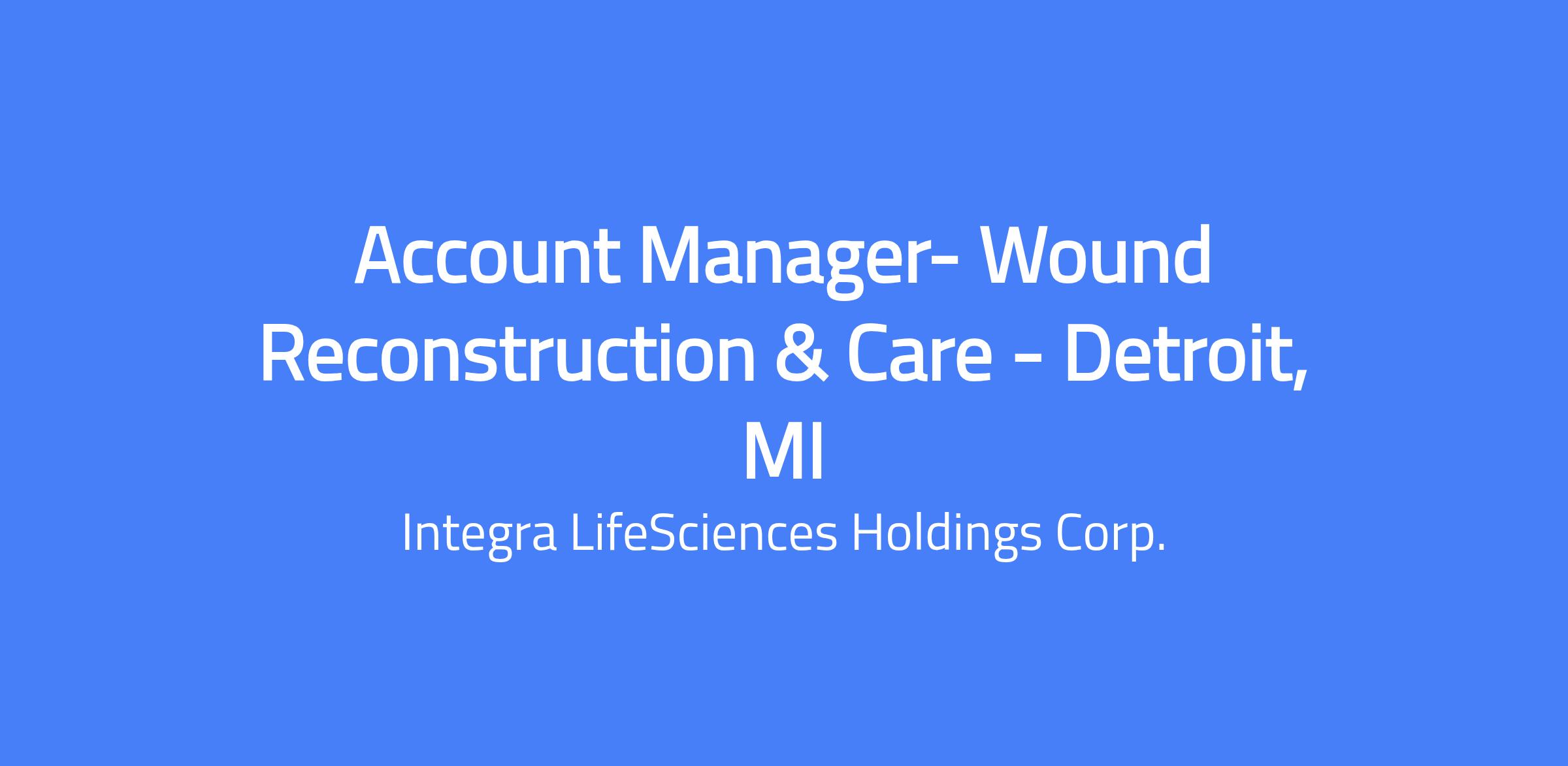 Changing lives. Building Careers. Joining us is a chance to do important work that creates change and shapes the future of healthcare. Thinking differently is what we do best. To us, change equals opportunity. Every day, our colleagues are challenging whatâs possible and making headway to innovate new treatment pathways to advance patient outcomes and set new standards of care. The Wound Reconstruction and Care Account Manager will be a responsible for Integraâs Integra Skin, PriMatrix and OmniGraft, product lines and solely responsible for supporting the sales of these products for a defined territory within the Hospital OR/Surgery and post-acute wound care setting. Primary responsibility will be to achieve or exceed defined territory sales revenue targets through strategic planning, relationship building, new account targeting, extensive product knowledge and exceptional customer service. The Account Managers will call on multiple call points/specializations with majority of time spent in the Operating Room. The Account Manager will work across Integra functional areas to ensure customer satisfaction. The Account Manager will work with their team to ensure that regional/corporate financial goals are met. ESSENTIAL DUTIES AND RESPONSIBILITIES Develop new business with customers and accounts previously not sold to Attain monthly and quarterly sales objectives as defined by regional manager and corporate senior management Develop a formal business plan at the beginning of each fiscal year to be followed by subsequent monthly and quarterly territory reports aimed at achieving territory sales goals Work with peers when called up to support case coverage and inventory requests Take initiative to identify new business opportunities Identify product improvement opportunities for sales, marketing and product development teams. Maintain high level of technical, product and disease state knowledge Provide a consultative role in the OR environment in accordance with specific product indications Operate within defined budgets and strictly with in accordance with Corporate policies and procedures Strictly adhere to the policies and procedures within the Advamed Code of Conduct and the Sunshine Act Perform sales administrative duties in a timely manner and as defined by management. QUALICATIONS/EDUCATION & EXPERIENCE Bachelorâs degree or an equivalent combination of education (Associate degree or Medical Certification -CST, PT, etc.) and/or experience is required Minimum of 4 years of professional and/or related experience is required. Candidate must be local to Detroit Prior experience working in an operating room environment is required. Valid driver's license issued in the United States Willing and able to work outside of normal business hours Ability to travel on occasional weekends and/or overnight travel. Residence in or the ability to relocate to the posted territory Strong technical product knowledge of surgical instruments, procedures, protocols and solutions Strong interpersonal communication, influencing, critical thinking and problem-solving skills required. A qualified candidate will be efficient, organized, self-motivated, positive and pro-active Available before and after traditional work hours (9-5) PHYSICAL REQUIREMENTS The physical requirements listed in this section include, but are not limited, to the motor/physical abilities and skills require of this position in order to successfully undertake the essential duties and responsibilities of this position. In accordance with the Americans with Disabilities Act (ADA), reasonable accommodations may be made to empower individuals with disabilities to undertake the essential duties and responsibilities of the position. While undertaking the essential duties and responsibilities of the position, the employee must repeatedly sit, listen, speak, and travel by air, train and automobile. The employee is required to go to all areas of a hospital or similar medical facilities. The employee may be required to periodically lift and/or move up to 65 lbs. ADVERSE WORKING CONDITIONS The adverse working conditions listed in this section include, but are not limited to, those environmental conditions to which the employee may be exposed while undertaking the essential duties and responsibilities of this position, which is that of a general plant environment. Possible exposure to hospital pathogens. SELECTION GUIDELINES Formal application, rating of education and experience; oral interview and reference check; job related tests may be required. #LI-NN1 Our salary ranges are determined by role, level, and location. Individual pay is determined by several factors including job-related skills, experience, and relevant education or training. In addition to base pay, employees may be eligible for bonus, commission, equity or other variable compensation. Your recruiter can share more about the specific salary range for your preferred location during the hiring process. Additional Description for Pay Transparency: Subject to the terms of their respective plans, employees and/or eligible dependents are eligible to participate in the following Company sponsored employee benefit programs: medical, dental, vision, life insurance, short- and long-term disability, business accident insurance, and group legal insurance, and savings plan (401(k)). Subject to the terms of their respective policies and date of hire, Employees are eligible for the following https://jobs.integralife.com/total-rewards/ Integra LifeSciences is an equal opportunity employer, and is committed to providing equal employment opportunities to all qualified applicants and employees regardless of race, marital status, color, religion, sex, age, national origin, sexual orientation, physical or mental disability, or protected veteran status. This site is governed solely by applicable U.S. laws and governmental regulations. If you'd like more information on your rights under the law, please see t