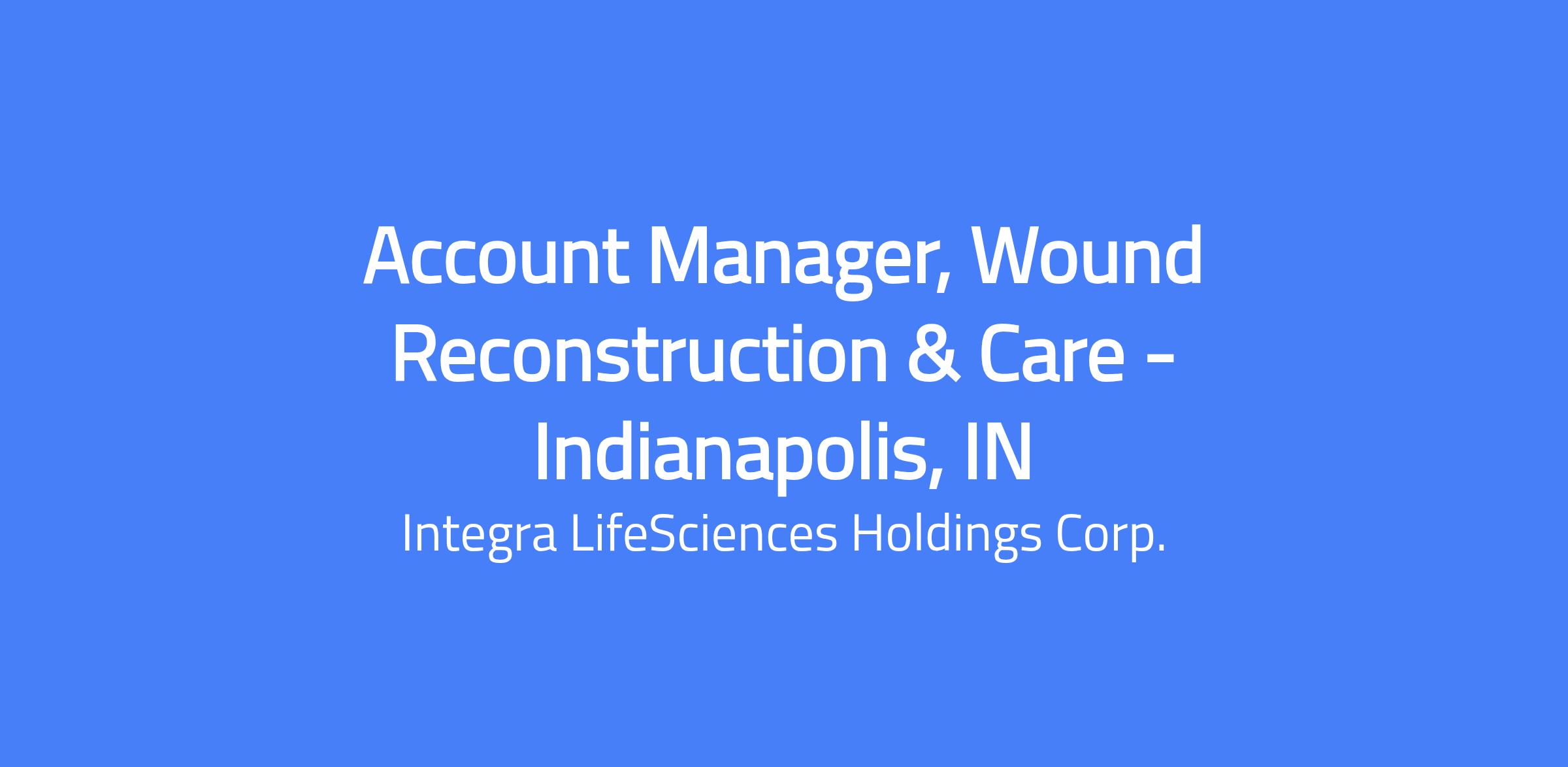 Changing lives. Building Careers. Joining us is a chance to do important work that creates change and shapes the future of healthcare. Thinking differently is what we do best. To us, change equals opportunity. Every day, our colleagues are challenging whatâs possible and making headway to innovate new treatment pathways to advance patient outcomes and set new standards of care. The Wound Reconstruction and Care Account Manager will be a responsible for Integraâs Integra Skin, PriMatrix and OmniGraft, product lines and solely responsible for supporting the sales of these products for a defined territory within the Hospital OR/Surgery and post-acute wound care setting. Primary responsibility will be to achieve or exceed defined territory sales revenue targets through strategic planning, relationship building, new account targeting, extensive product knowledge and exceptional customer service. The Account Managers will call on multiple call points/specializations with majority of time spent in the Operating Room. The Account Manager will work across Integra functional areas to ensure customer satisfaction. The Account Manager will work with their team to ensure that regional/corporate financial goals are met. ESSENTIAL DUTIES AND RESPONSIBILITIES Develop new business with customers and accounts previously not sold to Attain monthly and quarterly sales objectives as defined by regional manager and corporate senior management Develop a formal business plan at the beginning of each fiscal year to be followed by subsequent monthly and quarterly territory reports aimed at achieving territory sales goals Work with peers when called up to support case coverage and inventory requests Take initiative to identify new business opportunities Identify product improvement opportunities for sales, marketing and product development teams. Maintain high level of technical, product and disease state knowledge Provide a consultative role in the OR environment in accordance with specific product indications Operate within defined budgets and strictly with in accordance with Corporate policies and procedures Strictly adhere to the policies and procedures within the Advamed Code of Conduct and the Sunshine Act Perform sales administrative duties in a timely manner and as defined by management. QUALICATIONS/EDUCATION & EXPERIENCE Bachelorâs degree or an equivalent combination of education (Associate degree or Medical Certification -CST, PT, etc.) and/or experience is required Minimum of 4 years of professional and/or related experience is required. Candidate must be local to Indianpolis Prior experience working in an operating room environment is required. Valid driver's license issued in the United States Willing and able to work outside of normal business hours Ability to travel on occasional weekends and/or overnight travel. Residence in or the ability to relocate to the posted territory Strong technical product knowledge of surgical instruments, procedures, protocols and solutions Strong interpersonal communication, influencing, critical thinking and problem-solving skills required. A qualified candidate will be efficient, organized, self-motivated, positive and pro-active Available before and after traditional work hours (9-5) PHYSICAL REQUIREMENTS The physical requirements listed in this section include, but are not limited, to the motor/physical abilities and skills require of this position in order to successfully undertake the essential duties and responsibilities of this position. In accordance with the Americans with Disabilities Act (ADA), reasonable accommodations may be made to empower individuals with disabilities to undertake the essential duties and responsibilities of the position. While undertaking the essential duties and responsibilities of the position, the employee must repeatedly sit, listen, speak, and travel by air, train and automobile. The employee is required to go to all areas of a hospital or similar medical facilities. The employee may be required to periodically lift and/or move up to 65 lbs. ADVERSE WORKING CONDITIONS The adverse working conditions listed in this section include, but are not limited to, those environmental conditions to which the employee may be exposed while undertaking the essential duties and responsibilities of this position, which is that of a general plant environment. Possible exposure to hospital pathogens. SELECTION GUIDELINES Formal application, rating of education and experience; oral interview and reference check; job related tests may be required. #LI-NN1 Our salary ranges are determined by role, level, and location. Individual pay is determined by several factors including job-related skills, experience, and relevant education or training. In addition to base pay, employees may be eligible for bonus, commission, equity or other variable compensation. Your recruiter can share more about the specific salary range for your preferred location during the hiring process. Additional Description for Pay Transparency: Subject to the terms of their respective plans, employees and/or eligible dependents are eligible to participate in the following Company sponsored employee benefit programs: medical, dental, vision, life insurance, short- and long-term disability, business accident insurance, and group legal insurance, and savings plan (401(k)). Subject to the terms of their respective policies and date of hire, Employees are eligible for the following https://jobs.integralife.com/total-rewards/ Integra LifeSciences is an equal opportunity employer, and is committed to providing equal employment opportunities to all qualified applicants and employees regardless of race, marital status, color, religion, sex, age, national origin, sexual orientation, physical or mental disability, or protected veteran status. This site is governed solely by applicable U.S. laws and governmental regulations. If you'd like more information on your rights under the law, please s