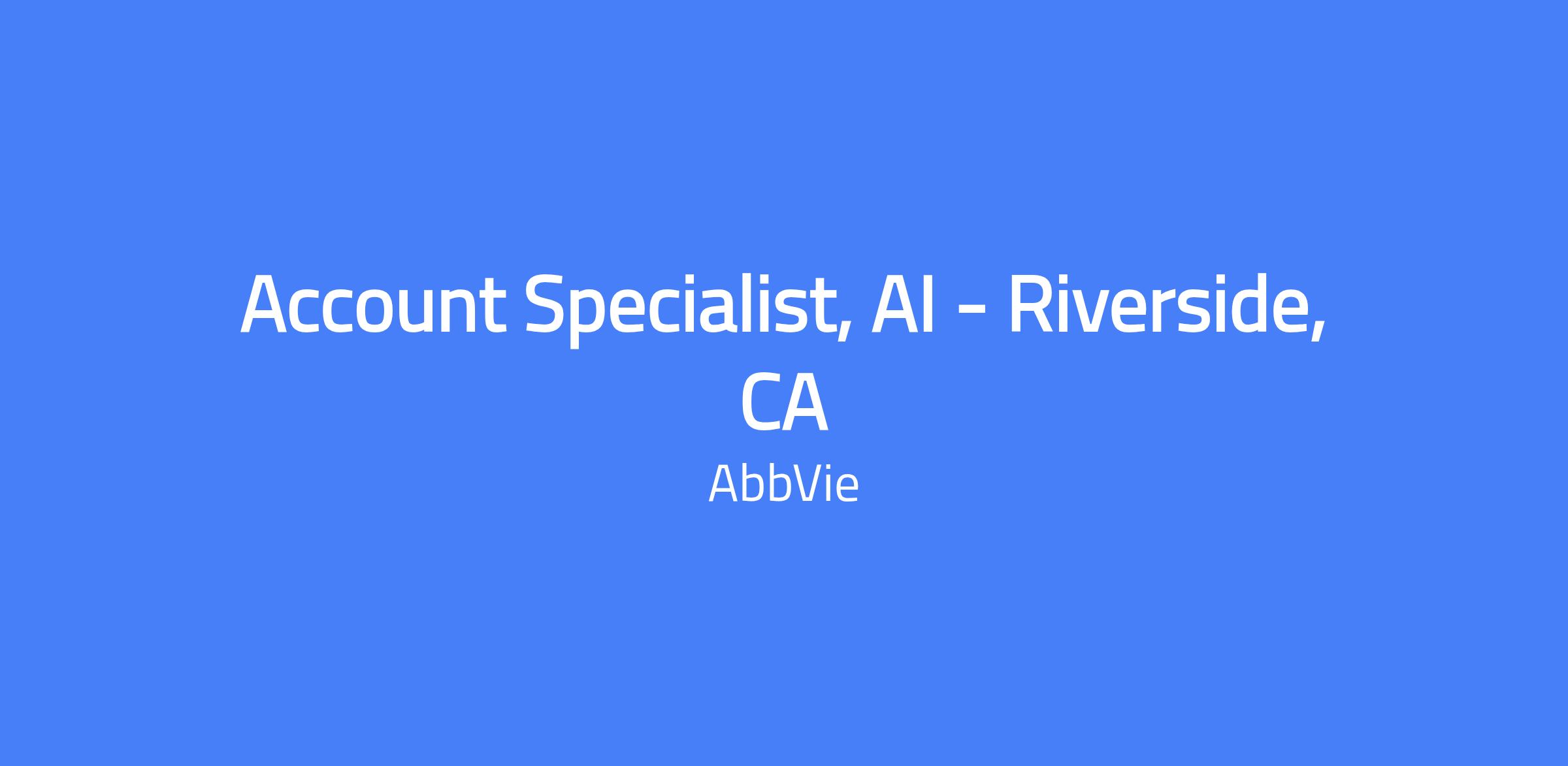 Account Specialist, AI - Riverside, CA will advance hospital and specialty customers along the sales continuum, gain prescriber commitments, and deliver on-label presentations to highlight product benefits and address gaps. The role involves developing professional relationships across accounts, navigating matrixed healthcare environments, and leading strategic geography plans to achieve sales objectives.