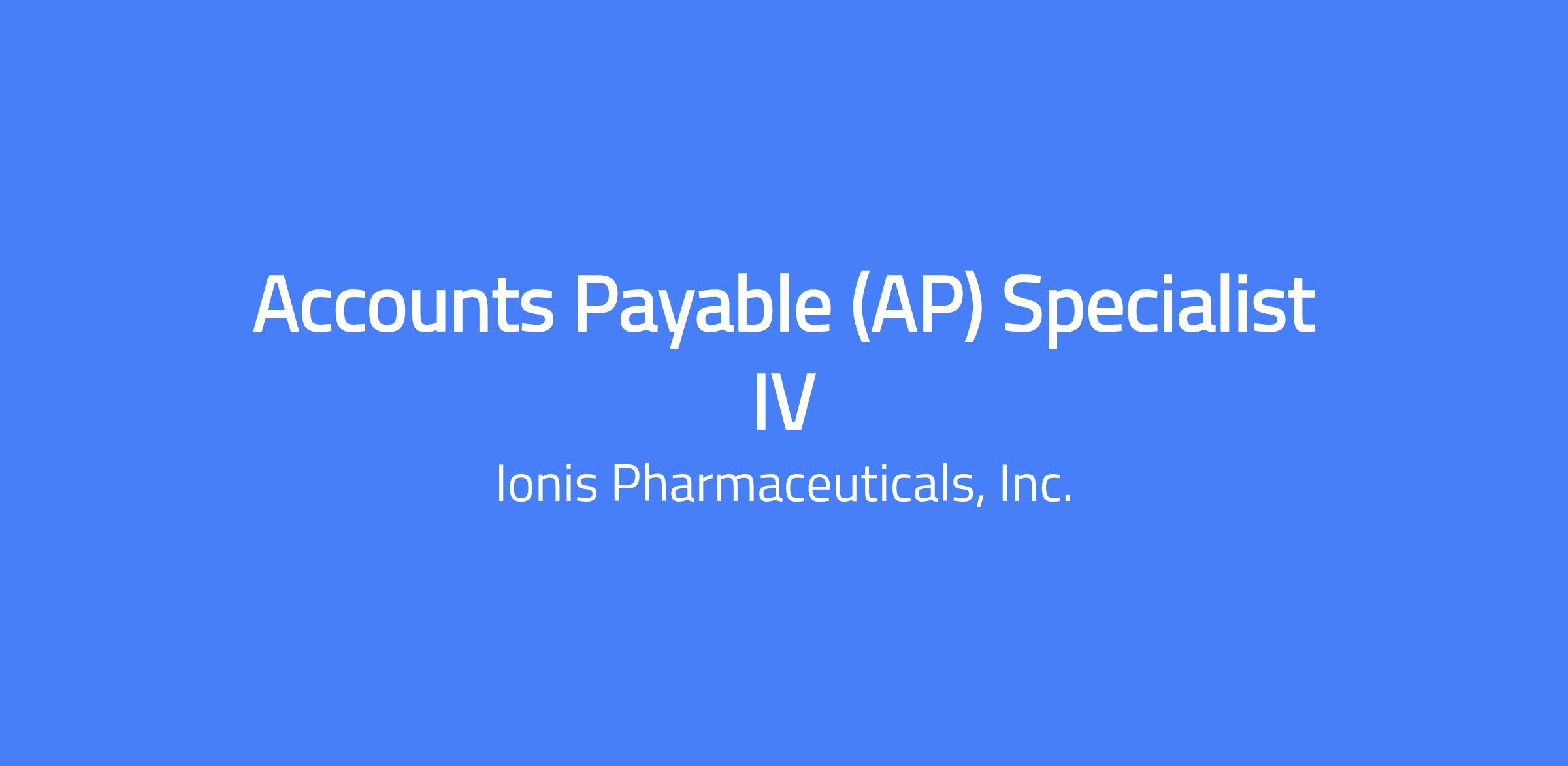 The Accounts Payable Specialist IV will support the Accounts Payable department, ensuring accurate and timely processing of invoices. This role includes invoice processing (3-way match and 2-way match), troubleshooting exception handling, resolving day-to-day AP issues, monitoring and ensuring AP aging reports are accurate, reconciling vendor statements, and monitoring the AP Inquiries mailbox. The AP Processor will assist in resolving integration and payment issues, audit Concur expense reports, support with Concur system inquiries, support system upgrades and implementations, and continuously seek ways to improve the efficiency of AP processes.