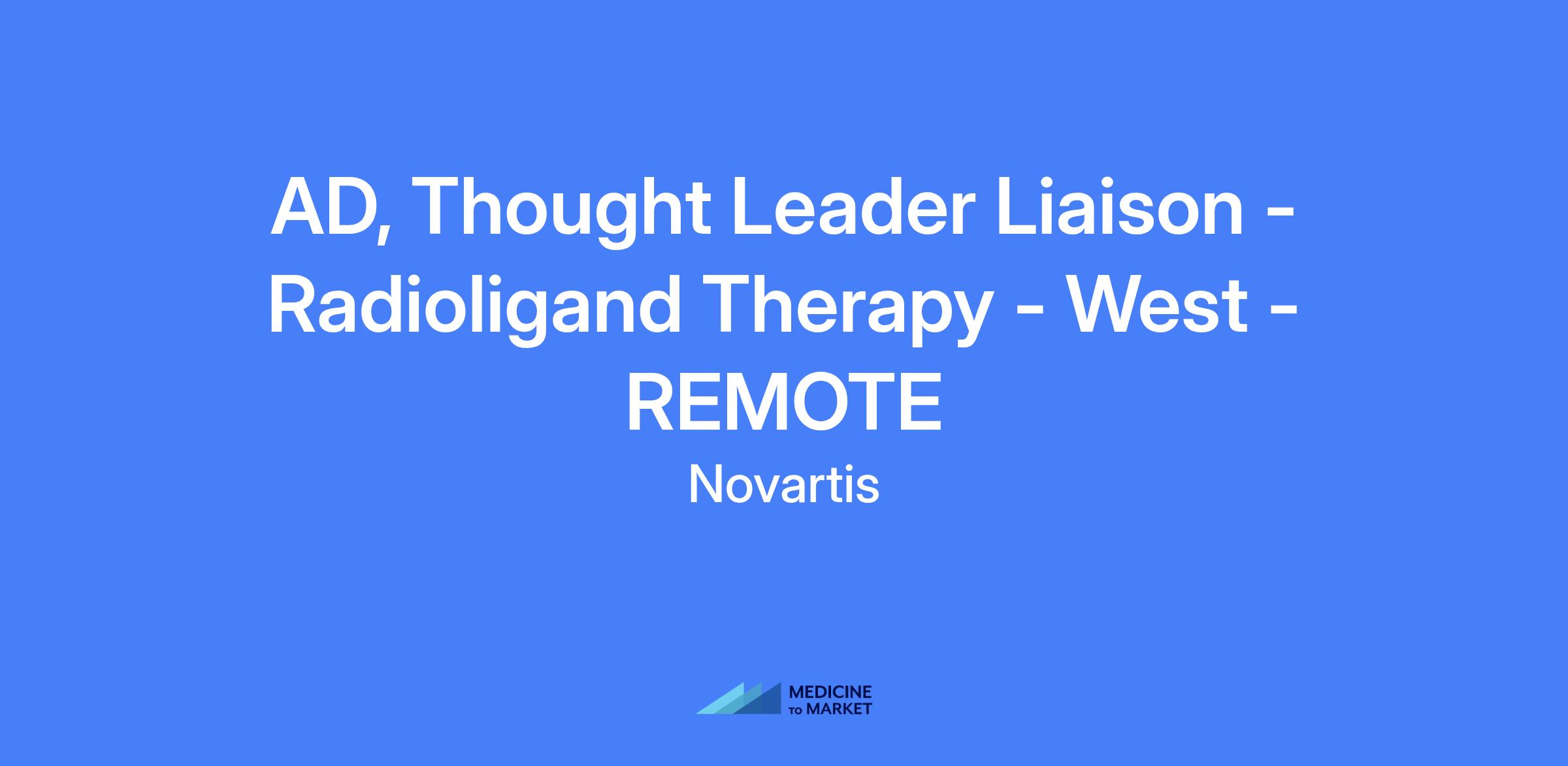 Join Novartis as an Associate Director, Thought Leader Liaison (TLL) for Radioligand Therapy. The TLL is a customer-facing role within Marketing responsible for engaging Thought Leaders and key influencers, and for curating advocacy and support within the Radioligand Therapy therapeutic area. They contribute to HCP education delivery and gather insights from the Thought Leader community in their geographic area. This role is remote, covers the western half of the US, and requires up to 80% travel.