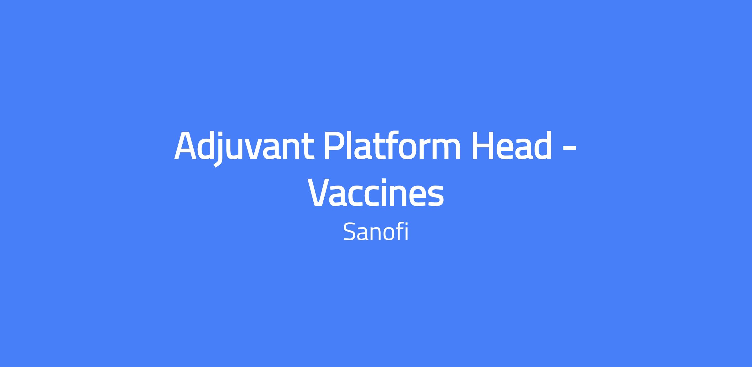 Lead the cross-functional Adjuvant Platform Global Team to deliver the strategy, plans and execution of Sanofiβs Adjuvant technology platform, aligned with the current and future Vaccine Project needs. Oversee clinical evaluations of Adjuvant formulations and secure external funding to advance our progress in developing and validating Adjuvants to support our current and future Vaccines portfolio. Location: Waltham, MA or Swiftwater, PA.