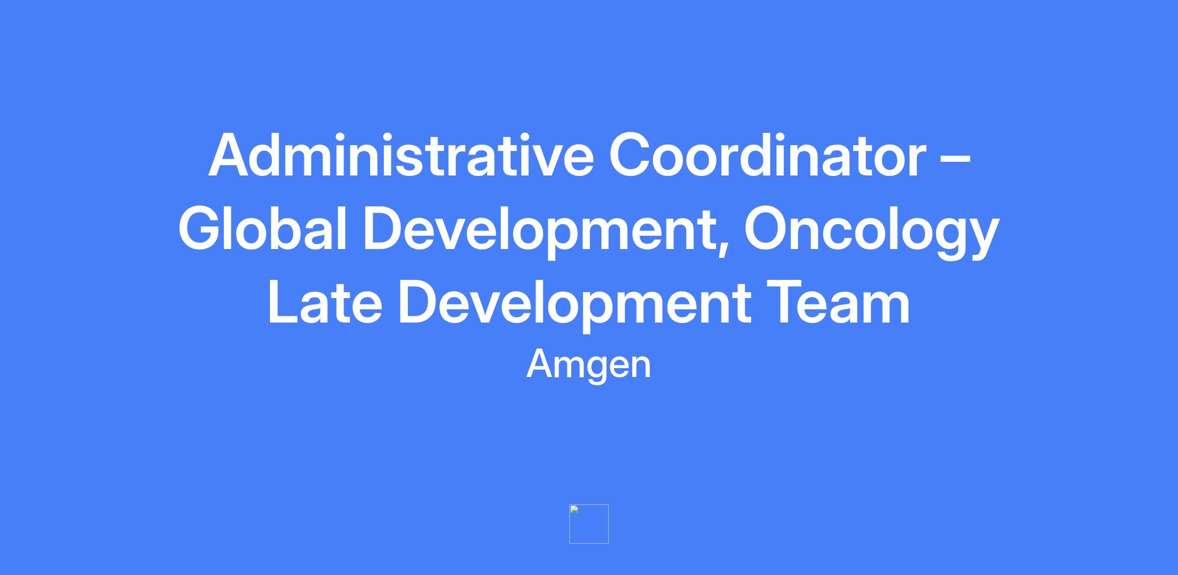Administrative Coordinator โ Global Development, Oncology Late Development Team. Provide comprehensive and high-level administrative support to Executive Directors, Directors, and cross-functional teams within the Global Development Oncology Late Development organization. This role requires exceptional organizational skills, strong attention to detail, and the ability to handle multiple priorities in a fast-paced, dynamic environment. The Administrative Coordinator will partner closely with internal stakeholders and external collaborators to ensure seamless operations and efficient coordination of departmental activities.