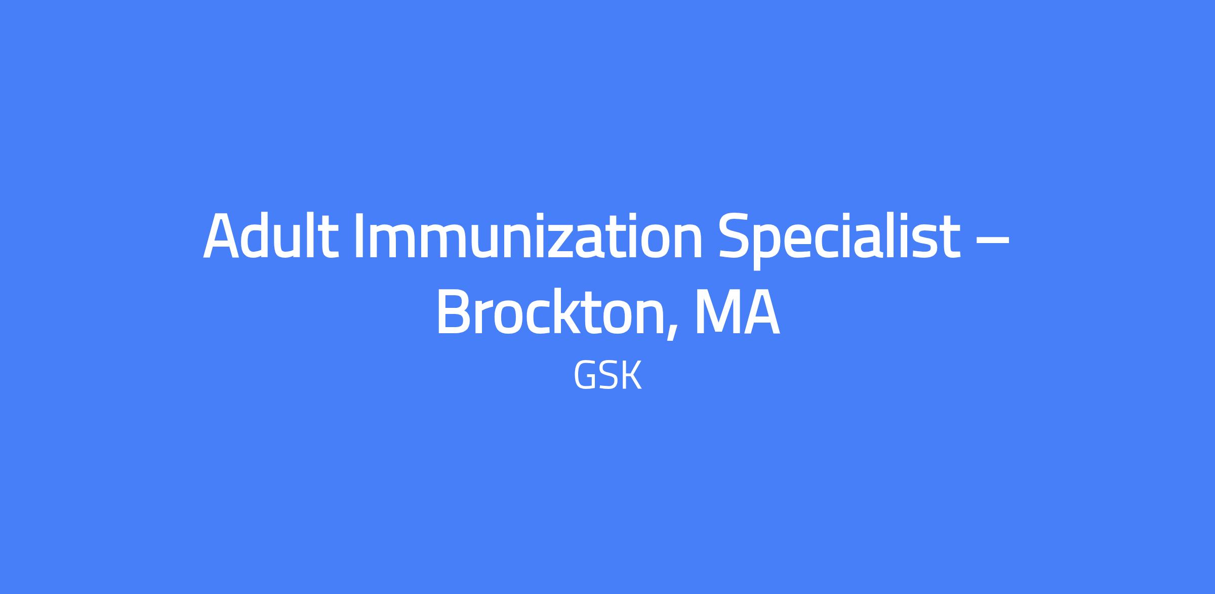 Adult Immunization Specialist โ Brockton, MA