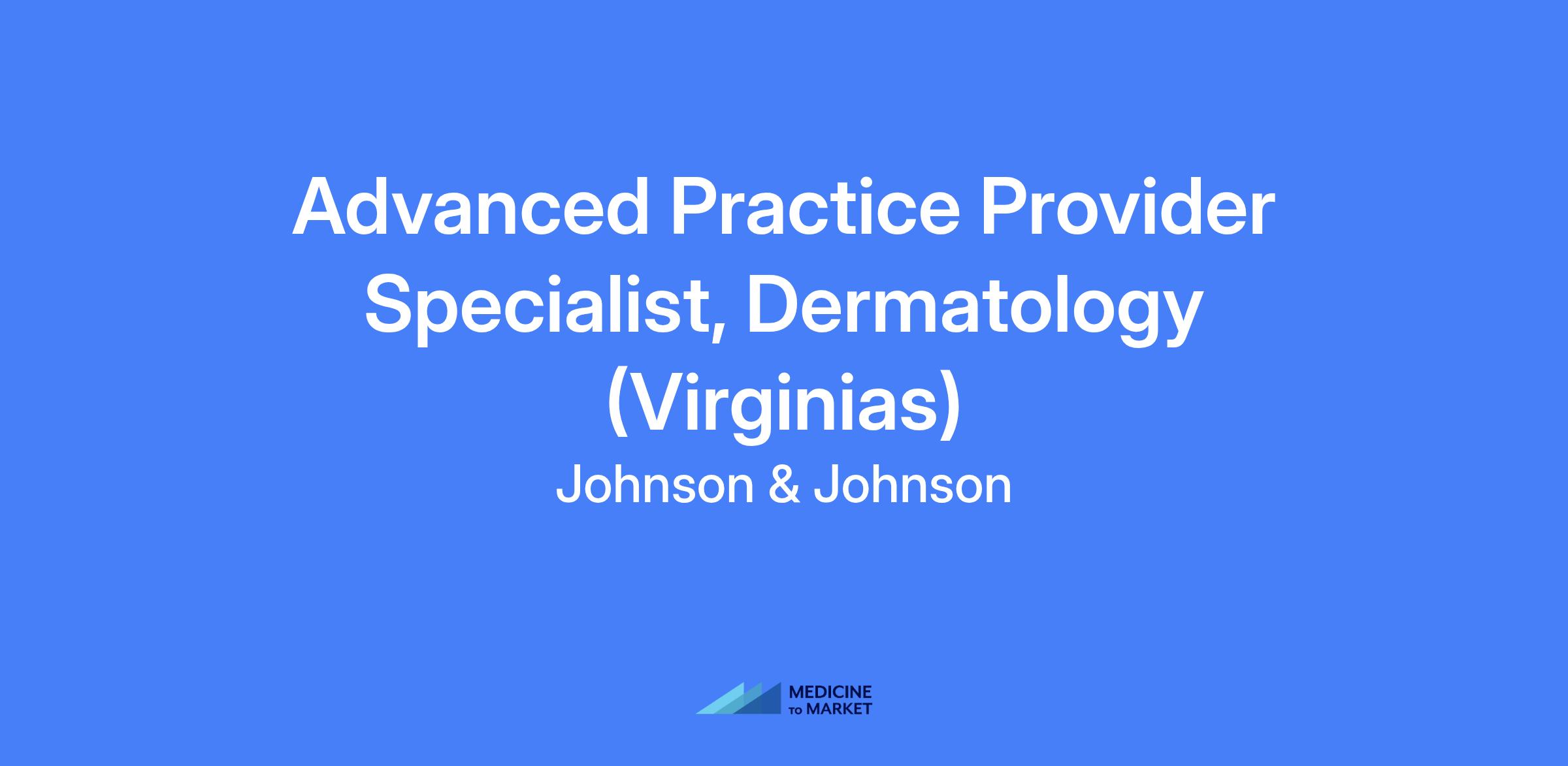 Advanced Practice Provider Specialist, Dermatology to cover the Virginia Beach, Richmond, Norfolk, Chesapeake & Henrico, VA territories. This position is field-based.