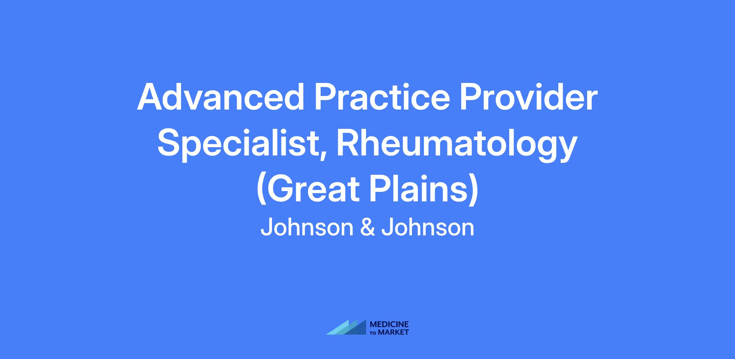 Johnson & Johnson Innovative Medicine is searching for the best talent for an Advanced Practice Provider Specialist, Rheumatology to cover the Memphis, TN, Oklahoma City, OK, Omaha, NE, Tulsa, OK & Wichita, KS territories. This position will be field based.