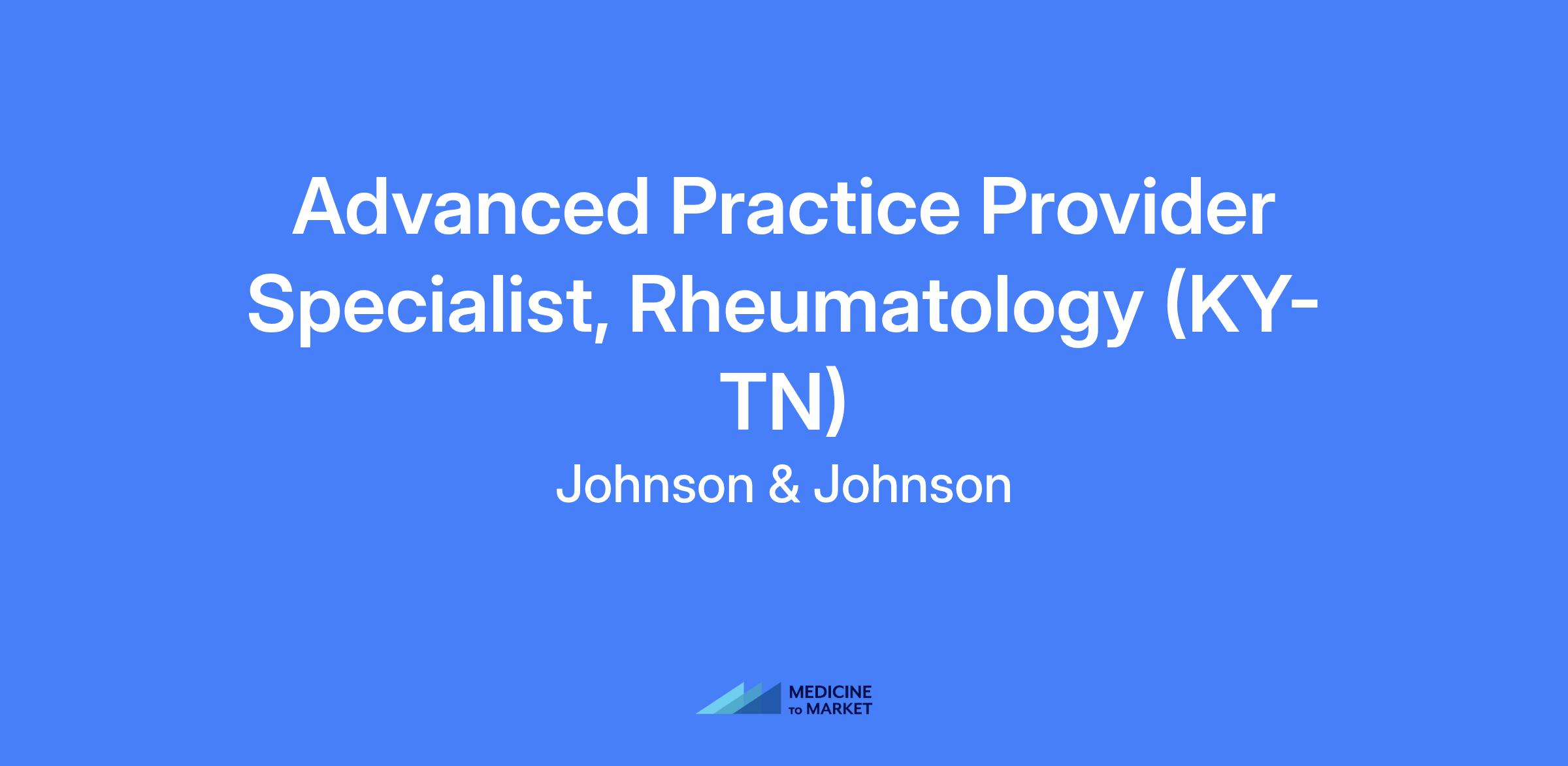 Johnson & Johnson Innovative Medicine is searching for the best talent for an Advanced Practice Provider Specialist, Rheumatology to cover the Louisville & Lexington, KY; Chattanooga & Knoxville, TN and Evansville, IN territories. This position will be field based.
