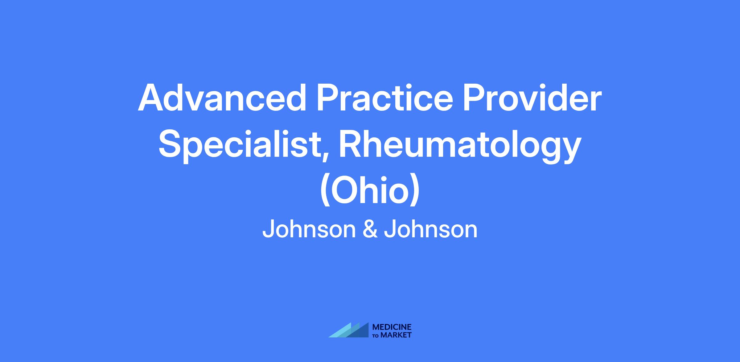Johnson & Johnson Innovative Medicine is searching for the best talent for an Advanced Practice Provider Specialist, Rheumatology to cover the Columbus, Cincinnati, Cleveland, Dayton & Toledo, OH territories. This position will be field based.