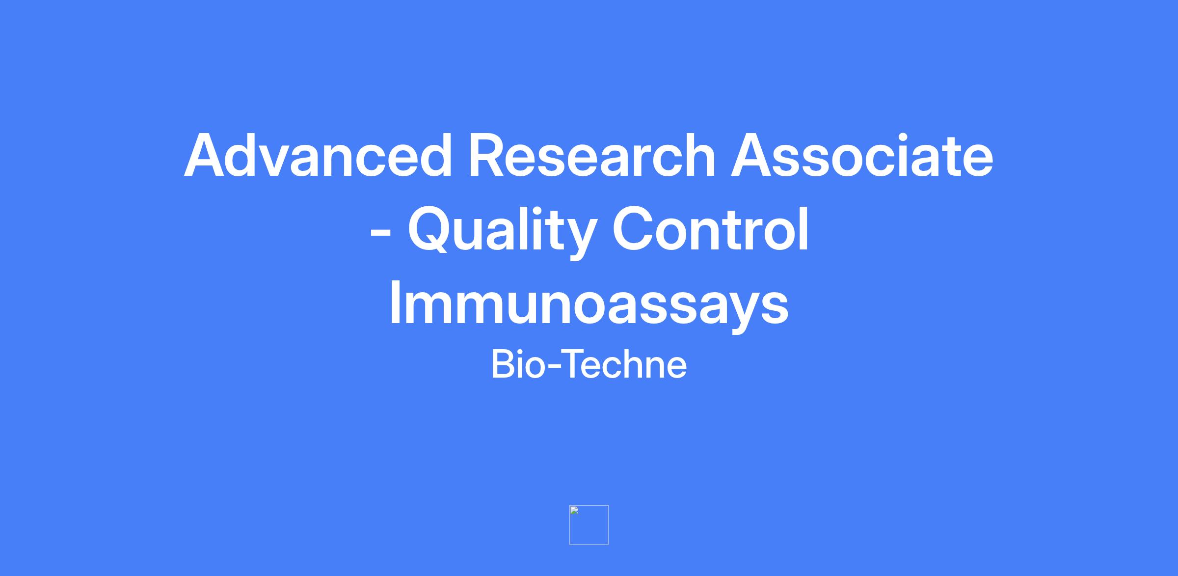 Advanced Research Associate - Quality Control Immunoassays. Performs immunoassay quality control testing to check quality performance of products, maintain accurate documentation of results, and maintain assay databases for immunoassay products including Quantikine, DuoSet, Luminex, IVD kits, and related product lines.
