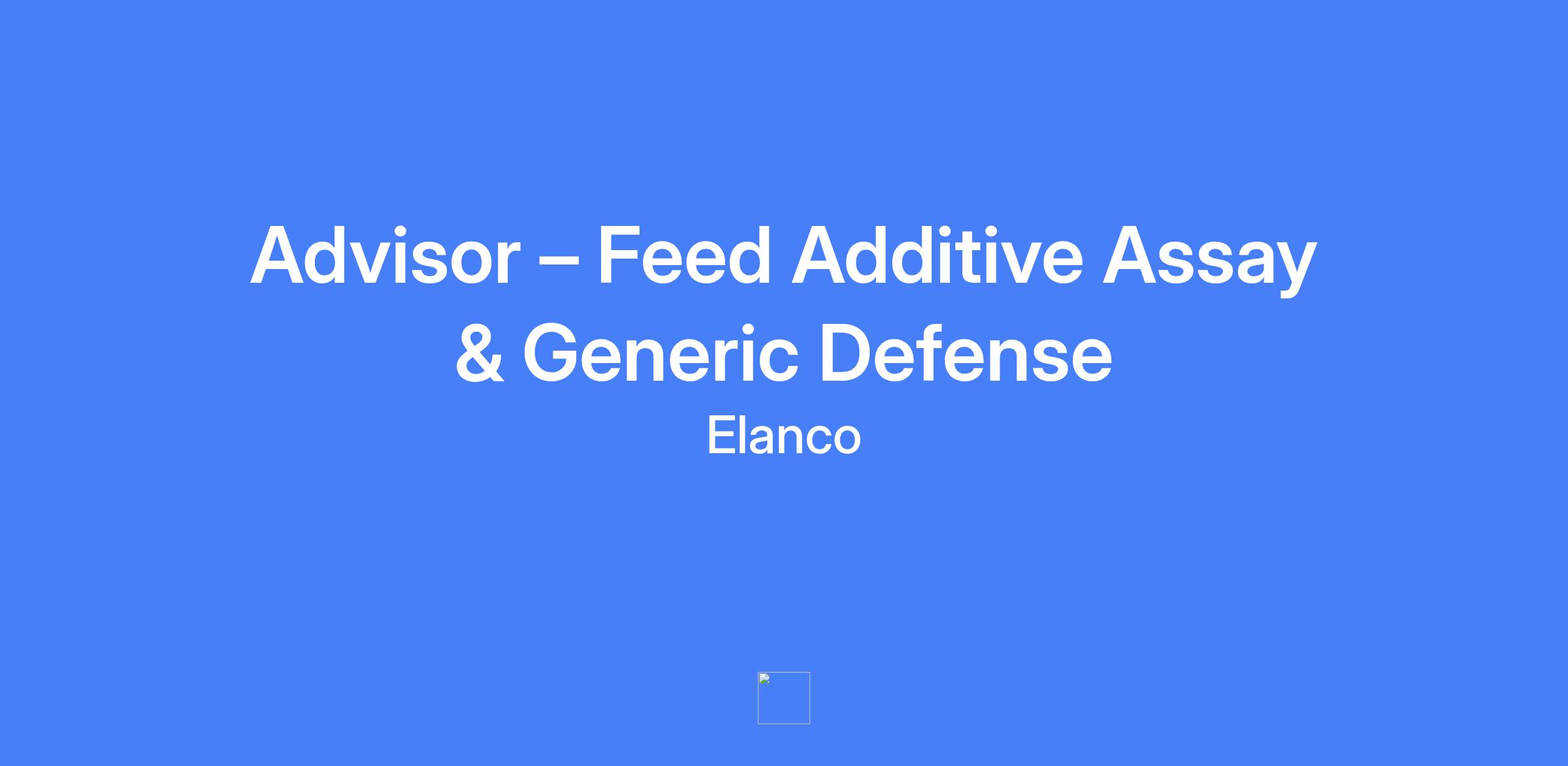 Advisor – Feed Additive Assay & Generic Defense. As Advisor – Feed Additive Assay & Generic Defense, you will lead Elanco’s testing strategy for feed additives (assays) and our defense against generic competitors. This role ensures our feed products are tested correctly and consistently, and coordinates efforts to protect their value against generic versions.