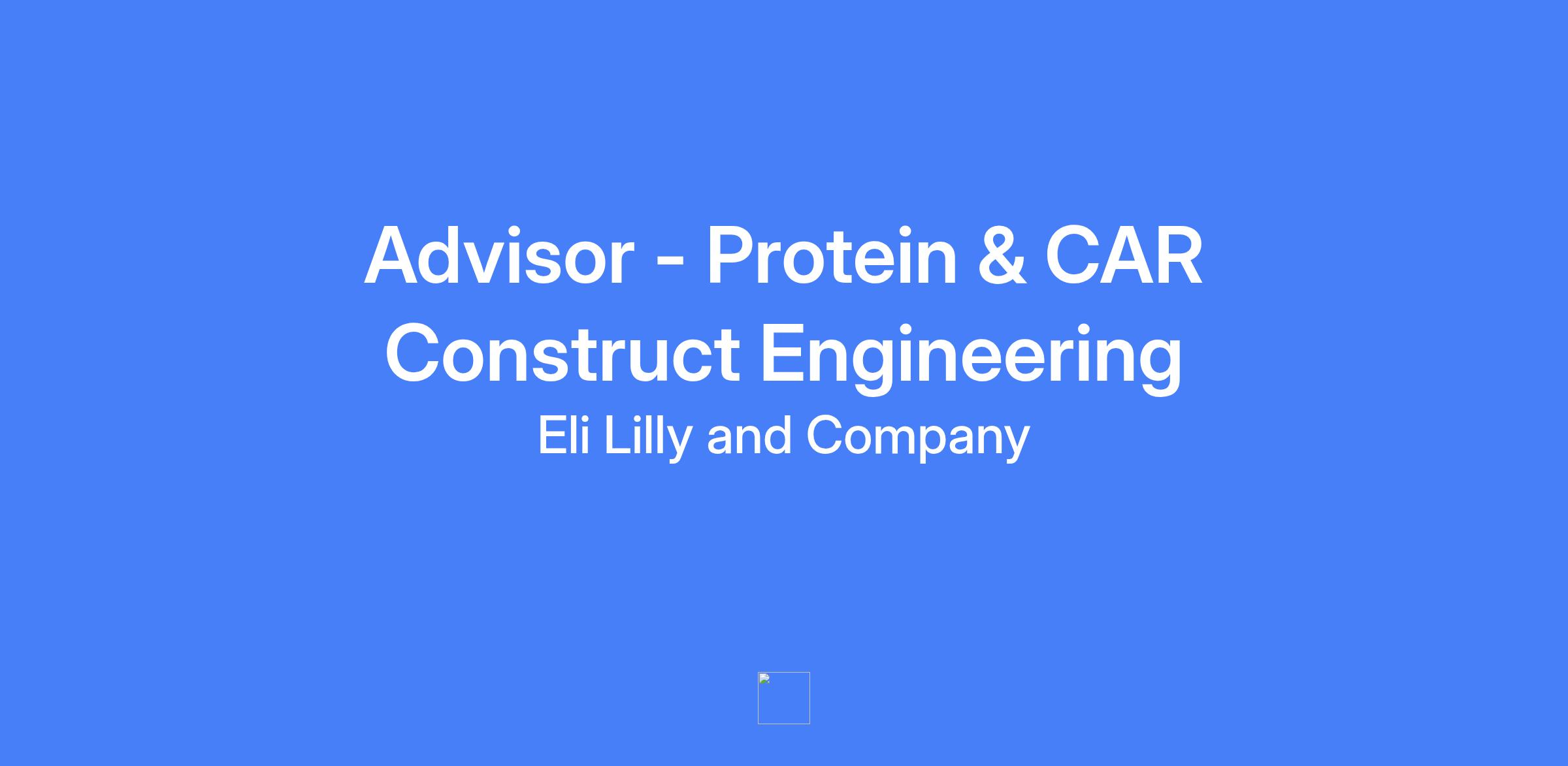 Advisor - Protein & CAR Construct Engineering aligns protein engineering and CAR construct design and optimization within Lilly's Biotechnology Discovery Research group. The role focuses on applying advanced protein sciences and immunotherapy development in a dynamic biotechnology environment, with opportunities to transition into an independent research career.