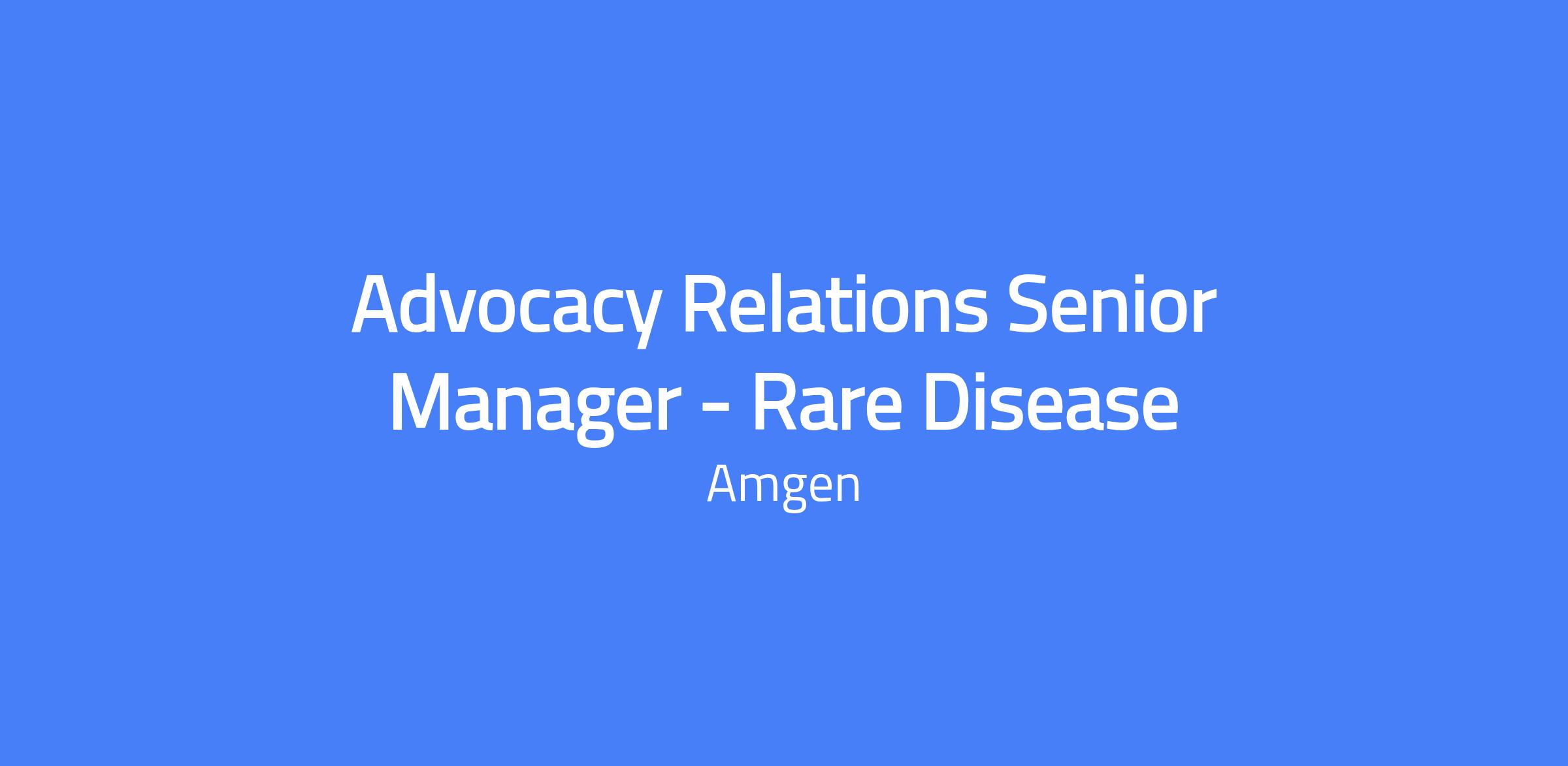 Advocacy Relations Senior Manager - Rare Disease. Join Amgen’s mission to serve patients living with serious illnesses. Drive patient advocacy efforts and help shape access, education, and empowerment for IgG4-RD and ANCA Associated Vasculitis within cross-functional teams.