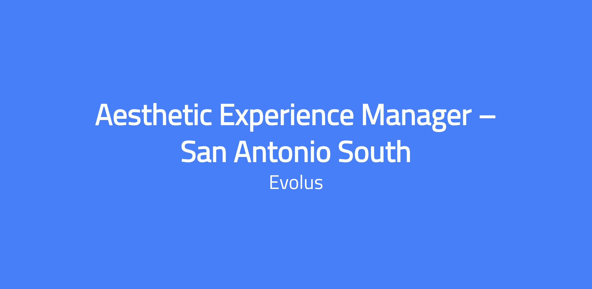 Aesthetic Experience Manager (AEM) / Senior Aesthetic Experience Manager in San Antonio South. Leads sales efforts in the assigned territory, acting as a strategic partner to current and prospective customers across specialties, promoting the Evolus aesthetics portfolio, and driving brand adoption while exceeding sales objectives. Delivers product insights, strategic pricing, and tailored promotional solutions to enhance the customer journey.