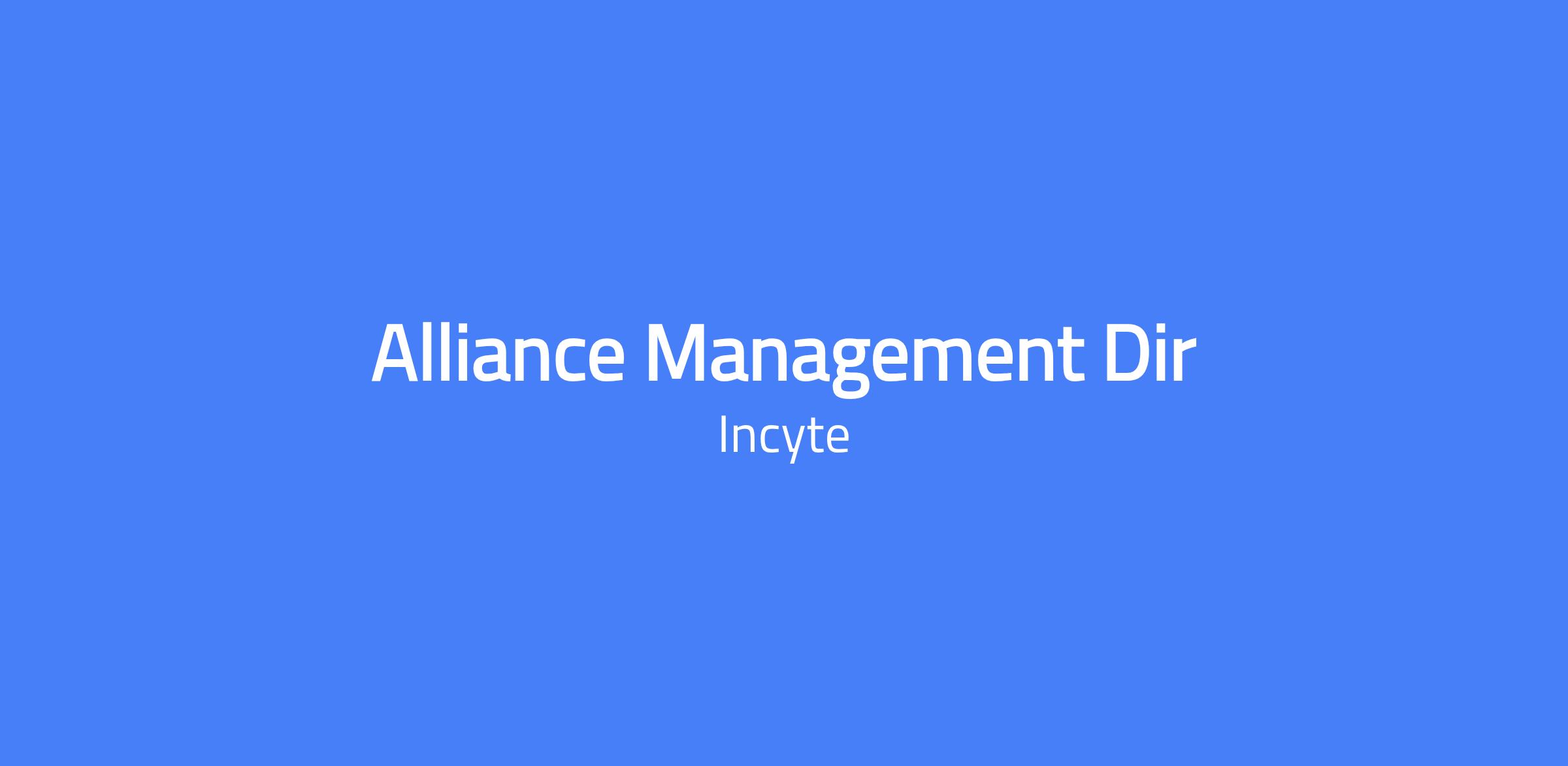 Alliance Management Director: Incyte is a biopharmaceutical company focused on the discovery, development, and commercialization of novel medicines to meet serious unmet medical needs in oncology and inflammation and autoimmunity. Incyte is committed to the rigorous pursuit of research and development excellence to improve the lives of patients, make a difference in health care, and build sustainable value. The Company strives to discover and develop first-in-class and best-in-class medicines-advancing a diverse portfolio of large and small molecules.