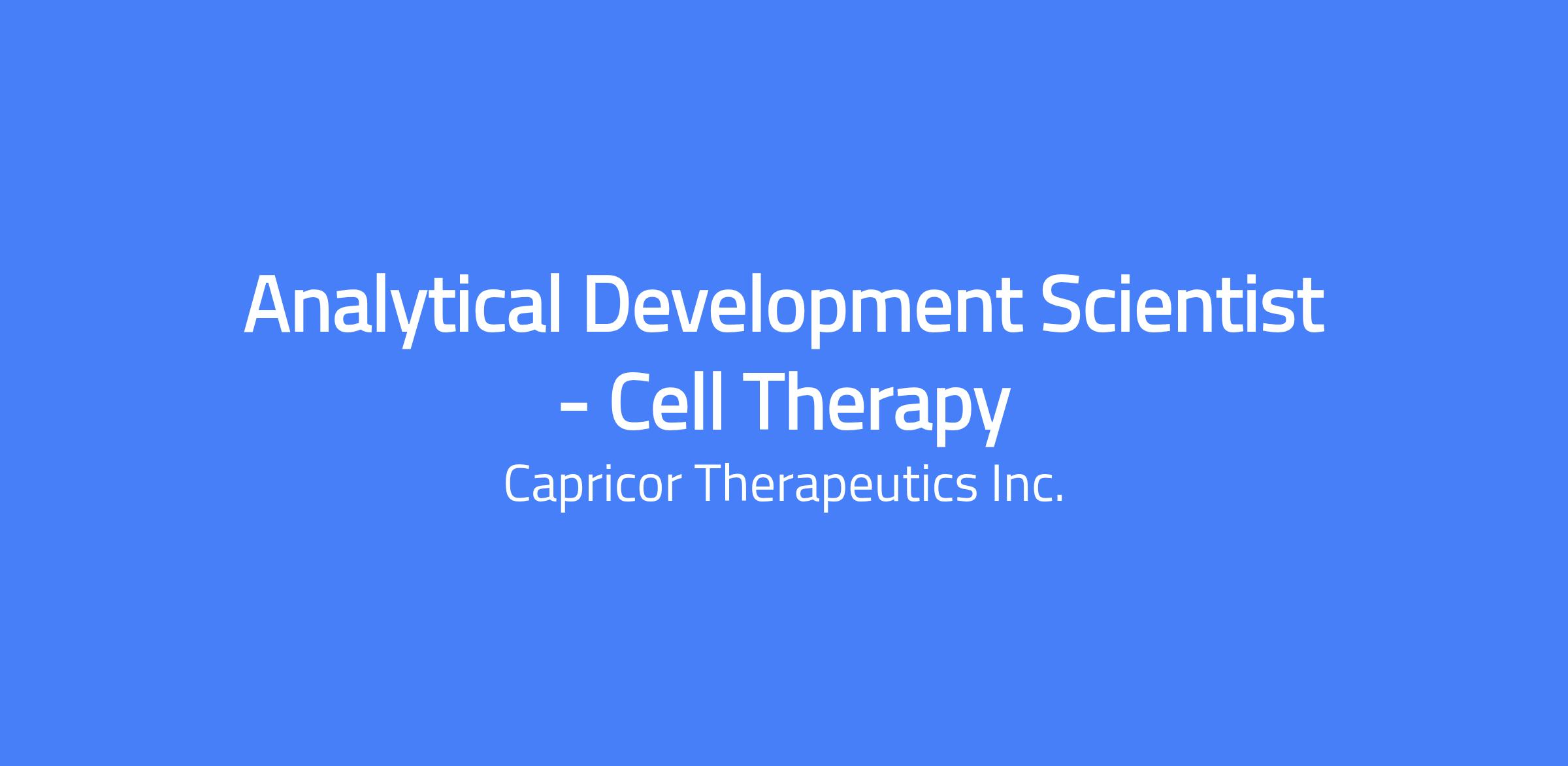 2+ years of post-doctoral experience in analytical development for cell and gene therapies